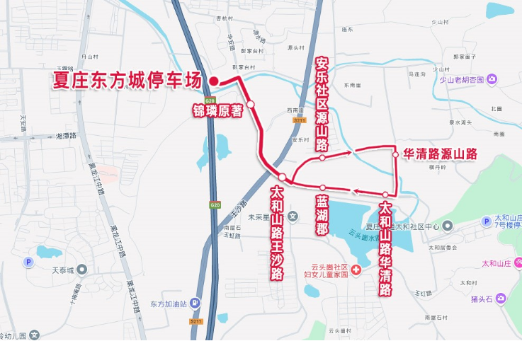 主站:夏庄东方城停车场,副站:华清路源山路。
