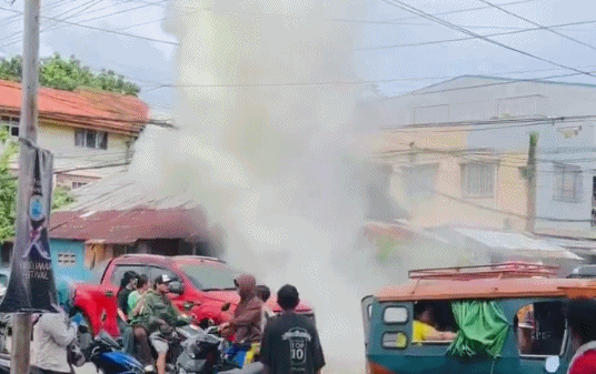 △菲律宾北萨马省一处电线杆因强震起火。