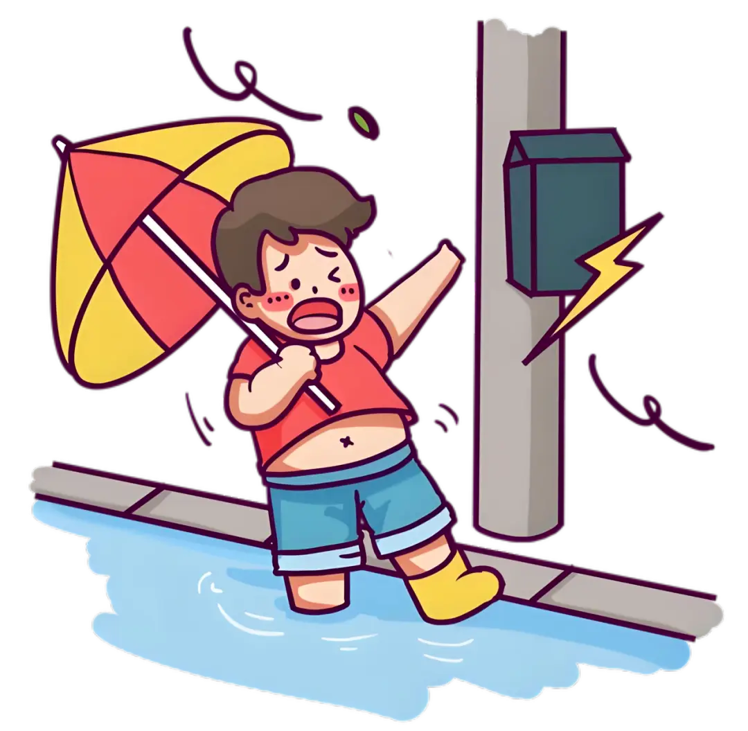 1.远离危险设施:避开广告牌、路灯杆、变电箱等带电设备,不靠近老旧围墙,防范线路漏电或建筑坍塌。遇积水路段不贸然蹚水,谨防水下电缆漏电触电。