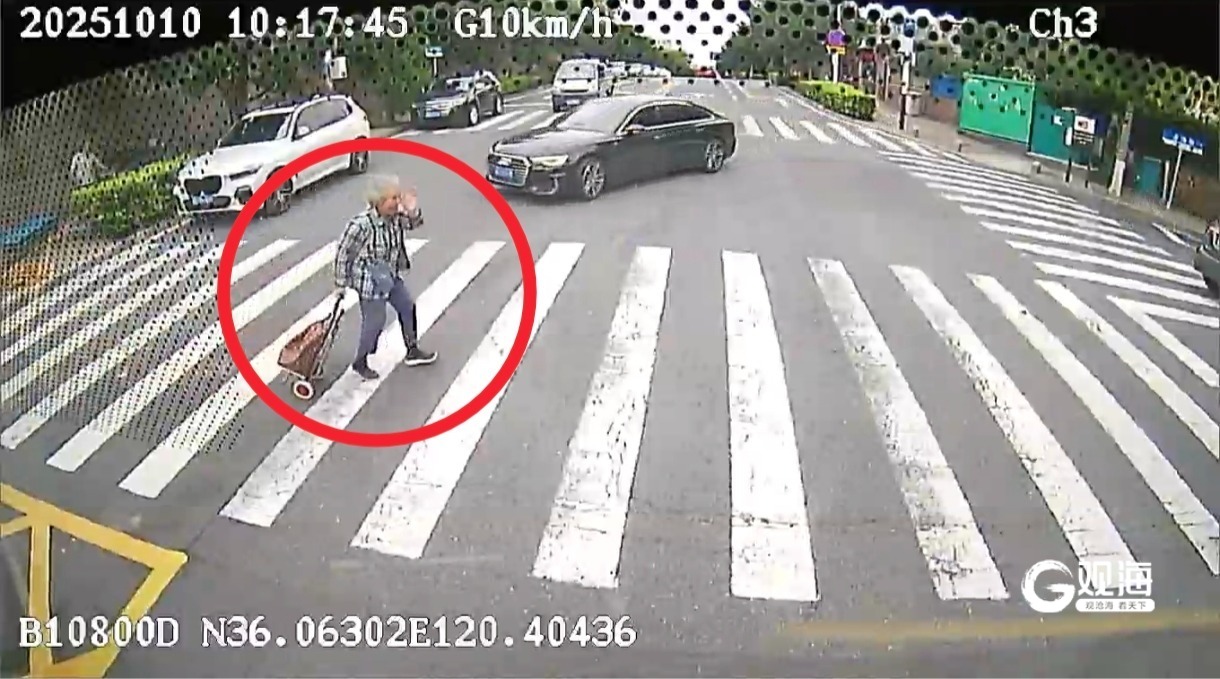 就在前一天,10月10日10时15分许,369路驾驶员曲广鲲也上演了类似暖心一幕。当车辆行驶至澄海路一处斑马线时,曲广鲲发现有老人因来往车辆未让行而停滞不前,他立即提前减速,稳稳停在停止线后耐心等候。老人行至马路中央时特意向驾驶位挥手致谢。曲广鲲微笑着回应,这一幕让车内乘客深受感动。
