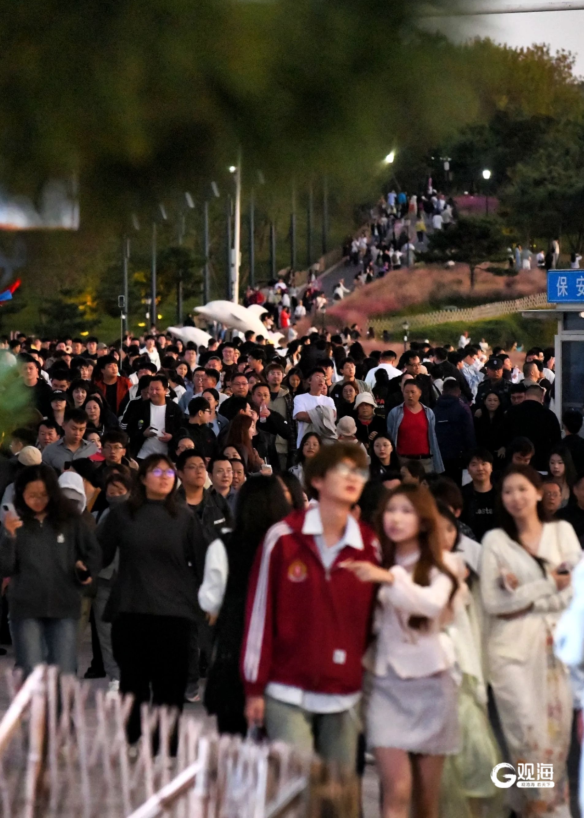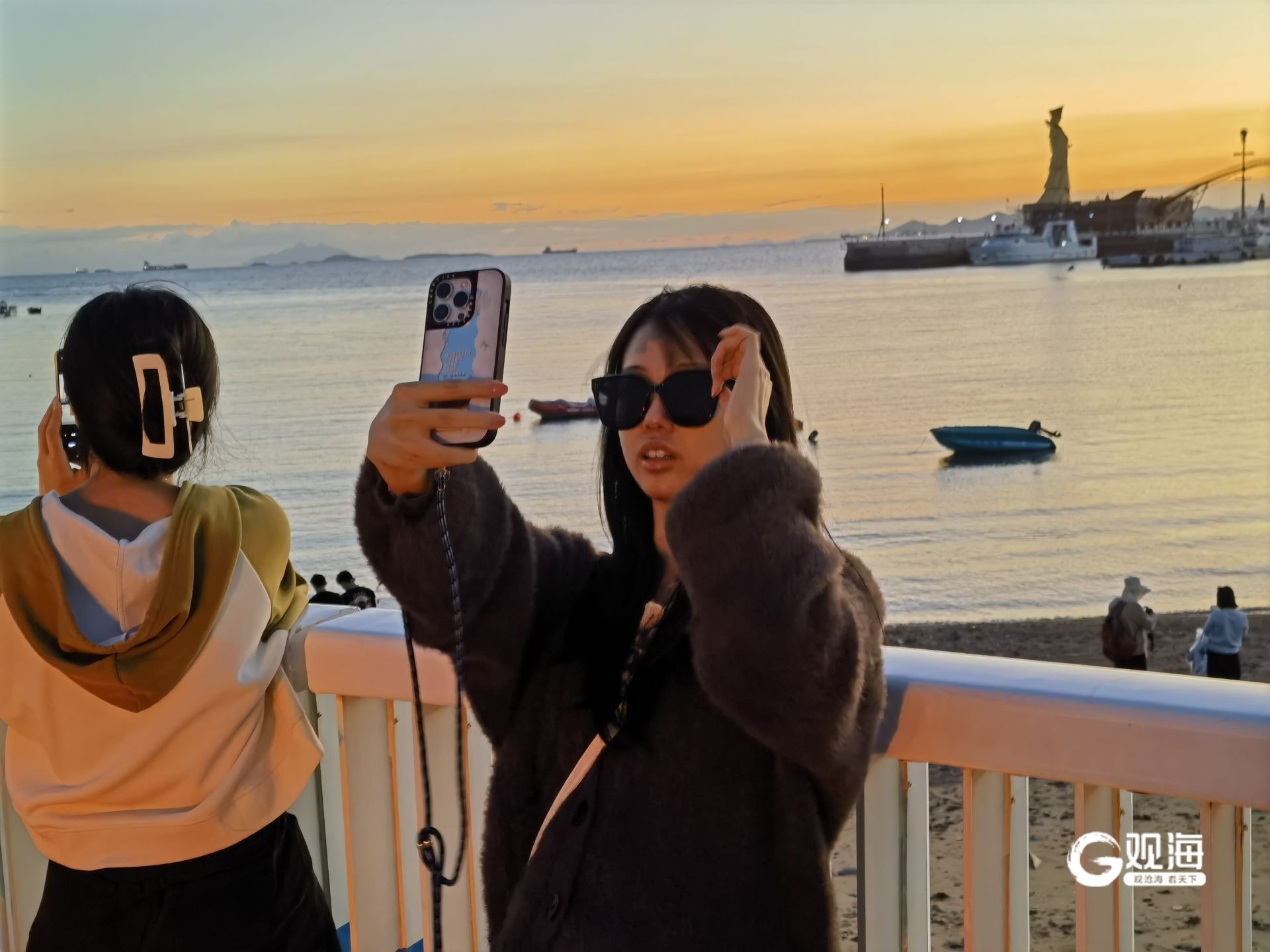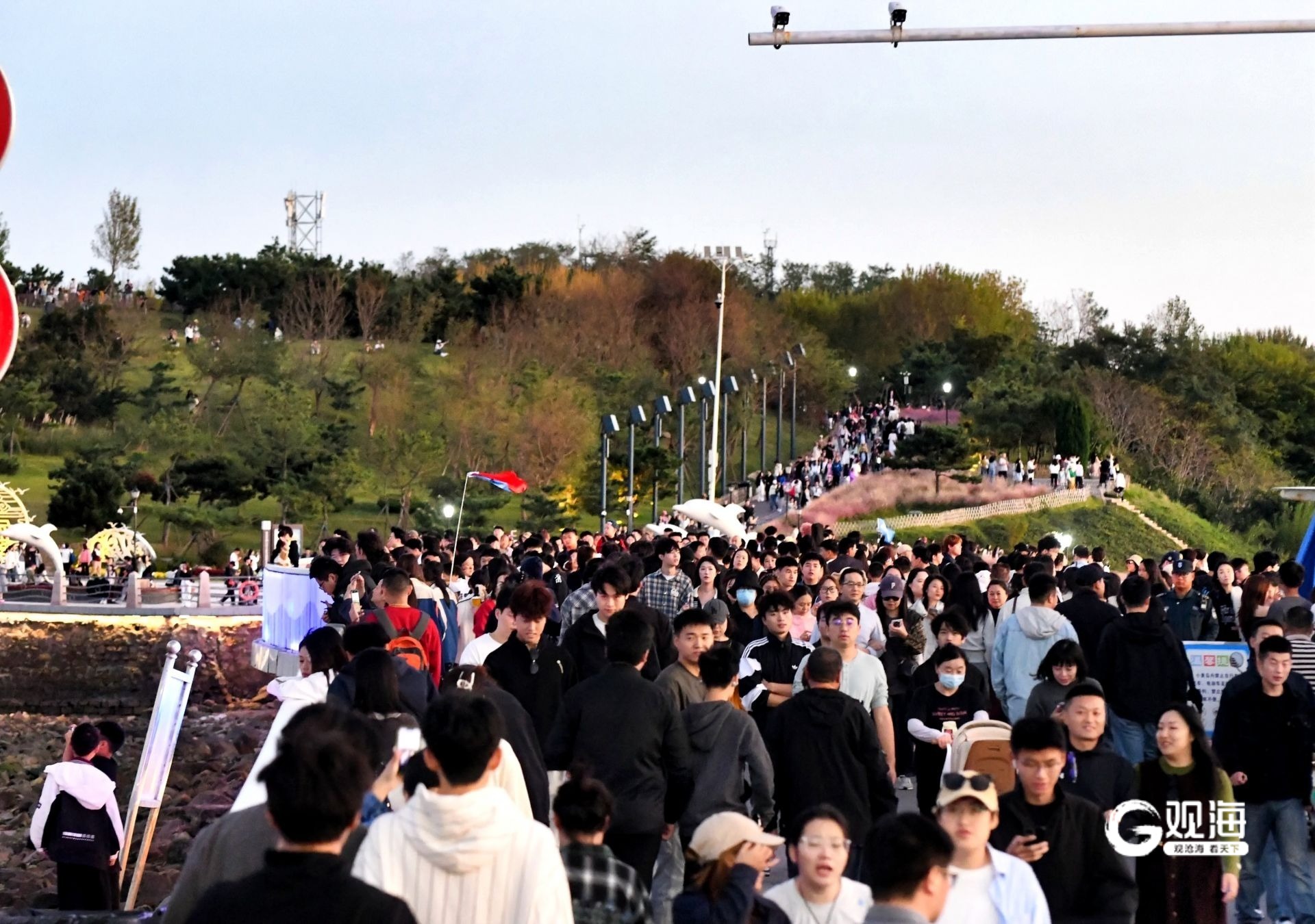 青岛日报社/观海新闻10月14日讯 国庆长假虽已结束,但青岛的旅游热度并未随之降温。14日傍晚,小麦岛公园依旧游人如织,市民与游客纷纷前来赴一场秋日夕阳的约会,展现出这座海滨城市持久的吸引力。