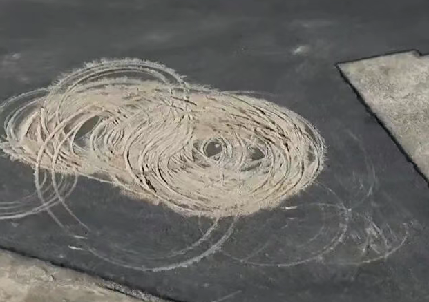 怀着对大字来历的敬畏,陆遥驾车从成都出发,跨越2000多公里,找到了地标文字,眼前的景象令人痛心:“人”和“民”二字之间布满了车辆漂移产生的沟壑,陆遥决定修复这些“伤痕”。他找来了朋友,和朋友的朋友,以及与被破坏地表相同的砾石,耗时多日对受损区域进行了修复。
