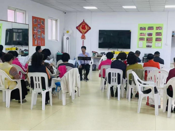 依托社区集体经济自持商铺资源,创新建设上流佳苑社区新时代文明实践站综合体,集成茶馆宣讲、“五为”志愿服务平台、幸福剧场、文化大院及美德积分兑换等五大功能场景,有效完善公共文化服务体系,将文化教育融入居民日常。其中,文化大院占地约1000平方米,设有排练室、多功能教室、服装设备仓储室、化妆间、棋牌室等9个室内功能区域,并配备多种室外健身器材,充分满足锣鼓队、舞蹈队、器乐队等6支文艺队伍的日常排练与活动需求。
