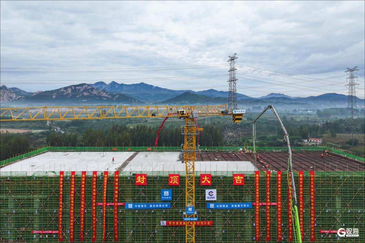 青岛日报社/观海新闻10月16日讯 今天,由中建筑港承建的沈海高速公路南村至青岛日照界段改扩建工程服务区房建工程施工2标段项目迎来重要建设节点——黄岛西服务区综合楼主体结构顺利封顶。此次封顶为后续机电安装与装饰装修等工序奠定了坚实基础,向打造区域交通服务新标杆迈出关键一步。