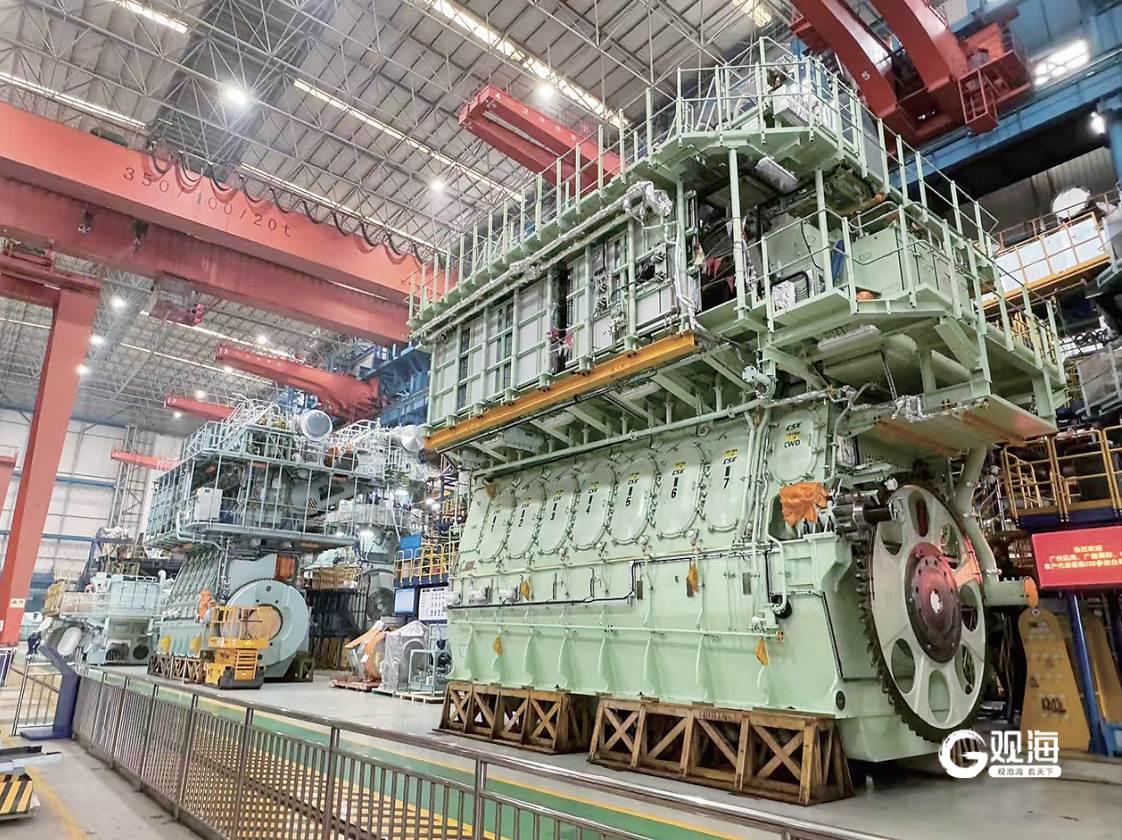 中船发动机生产的船用低速机。