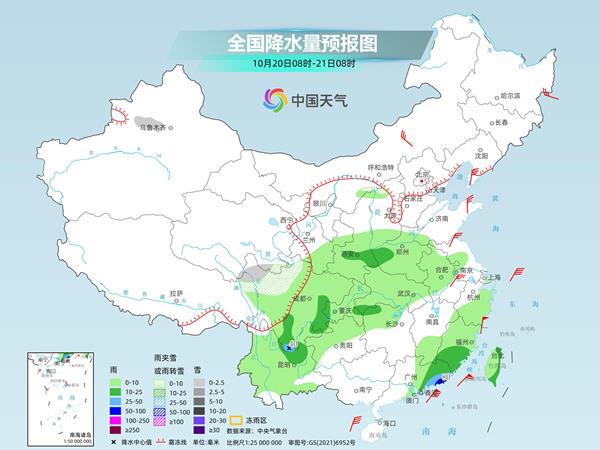 后天,新疆沿天山地区、青海东南部、川西高原北部等地部分地区有小雪或雨夹雪。陕西中部、河南西部、湖北南部、湖南西北部、四川南部、云南东北部、福建东南部、广东东南部、台湾岛等地部分地区有中到大雨。