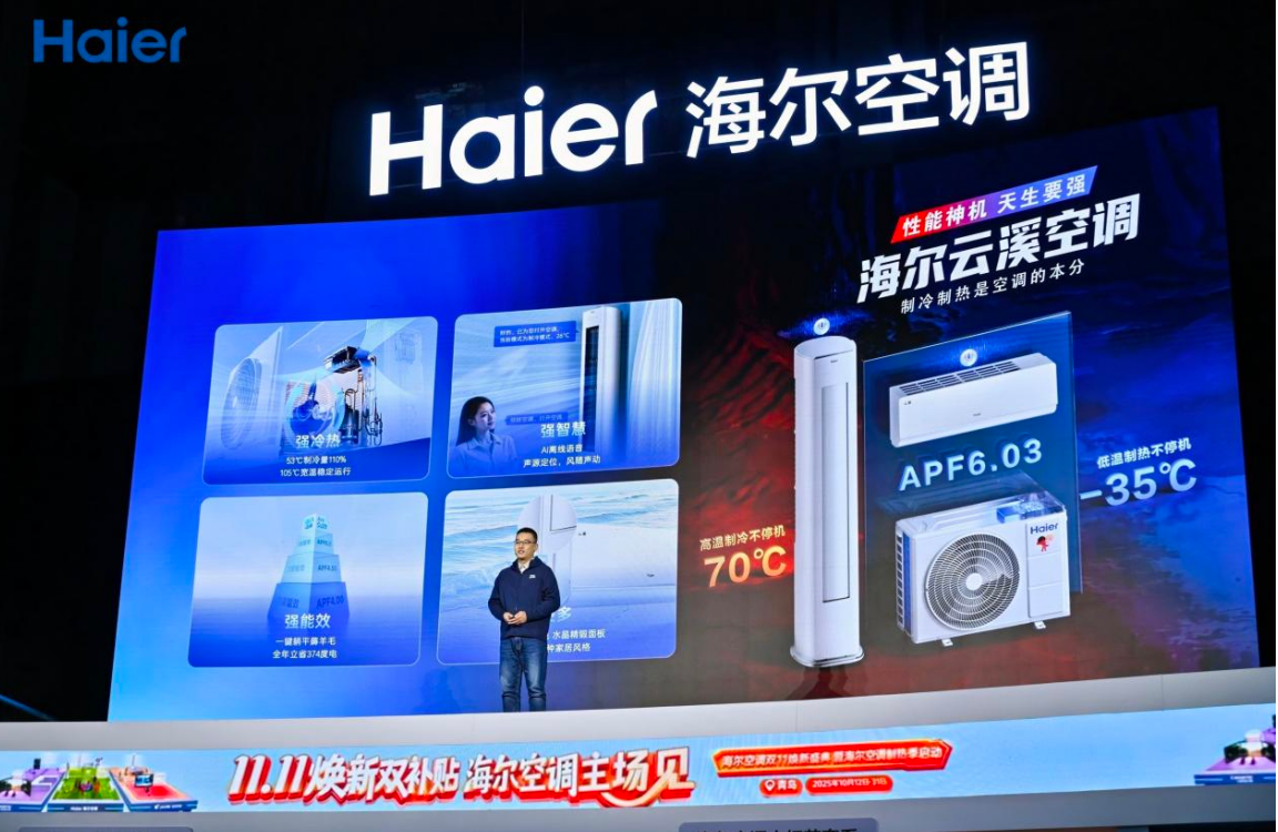 在当前双11关键节点,海尔空调再次打出王炸:10 月 18 日,在青岛举办以“智慧闯关・生活即主场”为主题的新品发布会,一次推出四大新发明——可“超低温强热”的海尔云溪空调、“空调地暖二合一”的海尔暖阳 Pro地暖中央空调,首创平隐式送风的卡萨帝揽光平隐式空调,以及18cm行业最纤薄内机的卡萨帝银河 Ⅱ 中央空调。这既是一次新品的集中亮相,更是一套覆盖全屋、适配多场景的空气解决方案,让“全屋每个角落都舒适”在这个双11成为可能。