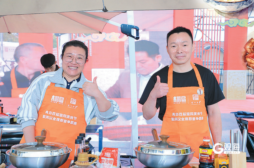 青岛首届里院美食节暨满汉全席厨皇争霸赛中,青岛市民踊跃参加“百姓厨神”大赛。