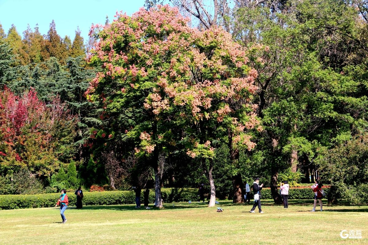 青岛日报社/观海新闻10月23日讯 霜降已至,青岛秋日浓度90%。此时的青岛被调色盘晕染,汇泉广场的几棵栾树率先开启浪漫模式,金红蒴果缀满枝头,与斑驳彩叶相映成趣。情侣们身着婚纱礼服,裙摆拂过落叶,笑容定格在秋日暖阳里,每一张合影都藏着专属温柔。