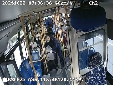 10月22日上午,杨海涛驾驶车辆由青岛科技大学发往镇平一路。7时36分左右,车辆经过尚东区站点时,杨海涛看到一位坐轮椅的老人正独自一人准备乘车。“当时这位老人颤颤巍巍,我看到他年龄比较大了,走路十分不方便。”杨海涛见状,立即停稳车辆,迅速下车帮老人将轮椅抬上车,并叮嘱老人注意安全,不用着急。