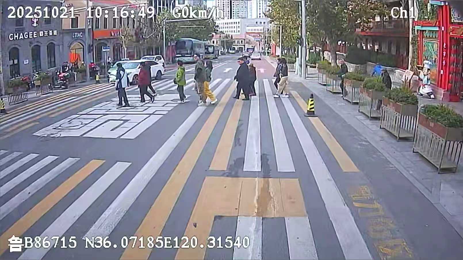 10月21日上午,市北巴士第一分公司2路线驾驶员张贞利驾车由金坛路站发往西镇。10时16分左右,车辆行驶至胶州路芝罘路车站附近一处没有信号灯的斑马线时,张贞利远远看见一群行人站在路边等待过马路。