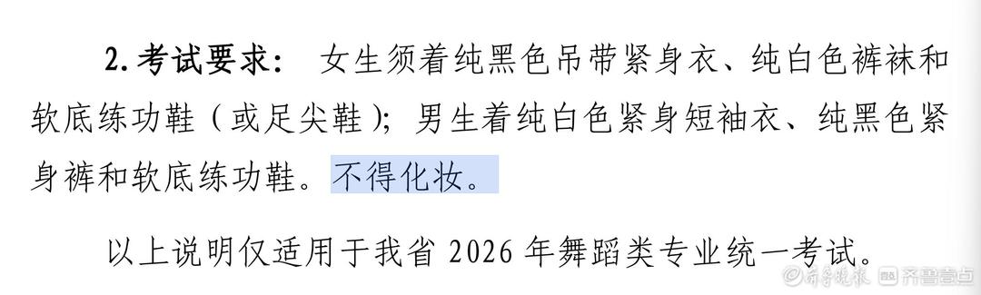 10月21日,山东省教育招生考试院发布山东省2026年艺术类专业统考公告,明确了2026年山东省艺考统考具体要求。根据公告,2026年山东省艺考统考将于2025年12月6日起开考。与上一年度相比,部分专业类别统考要求有所调整,“不得化妆”成了面试类专业的关键词。