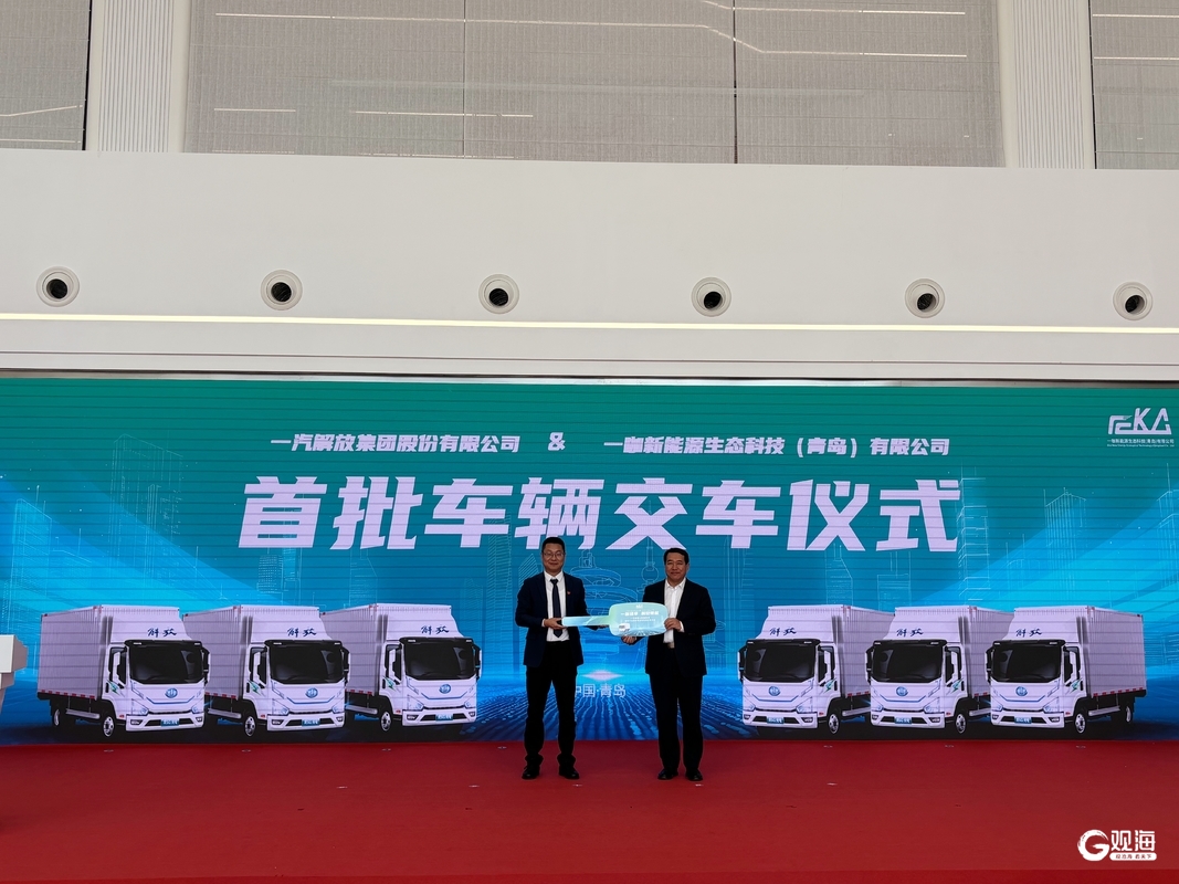 青岛日报社/观海新闻10月24日讯 24日上午,以“一咖租享 解放领航”为主题的一咖新能源生态科技(青岛)有限公司(简称:一咖科技)揭牌暨交车仪式在崂山区一汽解放(青岛)商用车开发院举行。