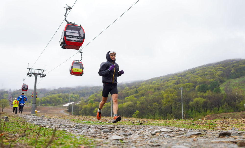 5月1日,运动爱好者在吉林市松花湖滑雪场参加越野跑。新华社记者 颜麟蕴 摄