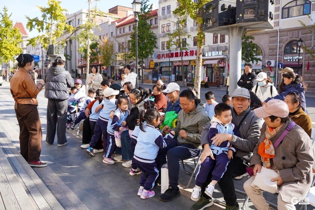 在青岛城市记忆博物馆内,老幼携手对照老照片与实景,探寻青岛街巷、建筑的变迁故事,感受城市发展脉络。家长志愿者还为孩子们讲述红色经典故事《鸡毛信》,生动的情节让孩子们在倾听中理解勇敢与担当,将红色种子播撒进幼小的心灵。