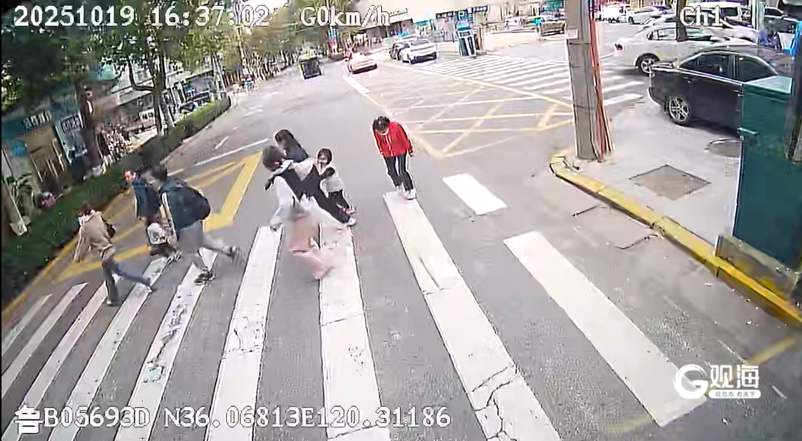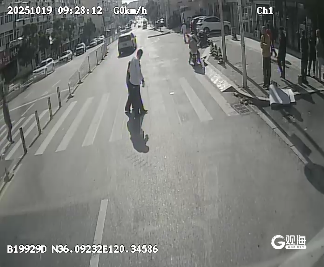 16时36分左右,车辆行至湖南路幼儿园附近路段。通过斑马线前,李为照注意到多位行人正在等待过马路。他提前减速,在斑马线前平稳停车,随后挥手示意行人先行。行人们见状纷纷加快步伐通过,其中有几位行人向驾驶室方向鞠躬致谢。
