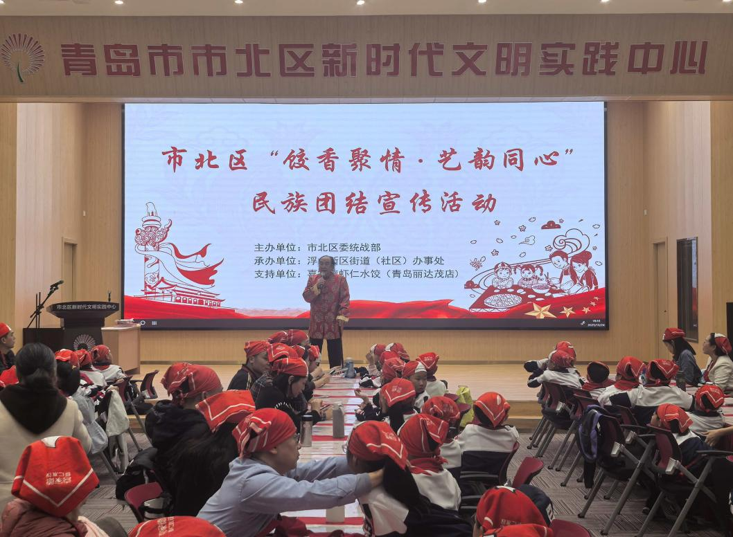 为弘扬敬老爱老的中华传统美德,10月24日,市北区“我们的节日·重阳”暨“饺香聚情·艺韵同心”民族团结宣传主题活动在市北区新时代文明实践中心举办。活动由市北区委宣传部、区委统战部、区文明办主办,浮山新区街道(社区)办事处承办,喜家德虾仁水饺(丽达茂店)支持。