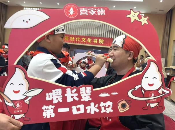 饺子品尝环节特设的“孝心传承”时刻,在喜家德虾仁水饺品牌方的暖心助力下更添温情——从学习包饺子到喂长辈第一口水饺,每一幕都定格成节日里最动人的画面。这一朴素的孝心之举,超越言语,为敬老爱老的传统美德作出生动的注脚,也让中华孝道的种子在他们心中深深植根,成为重阳节最温暖的价值传承。