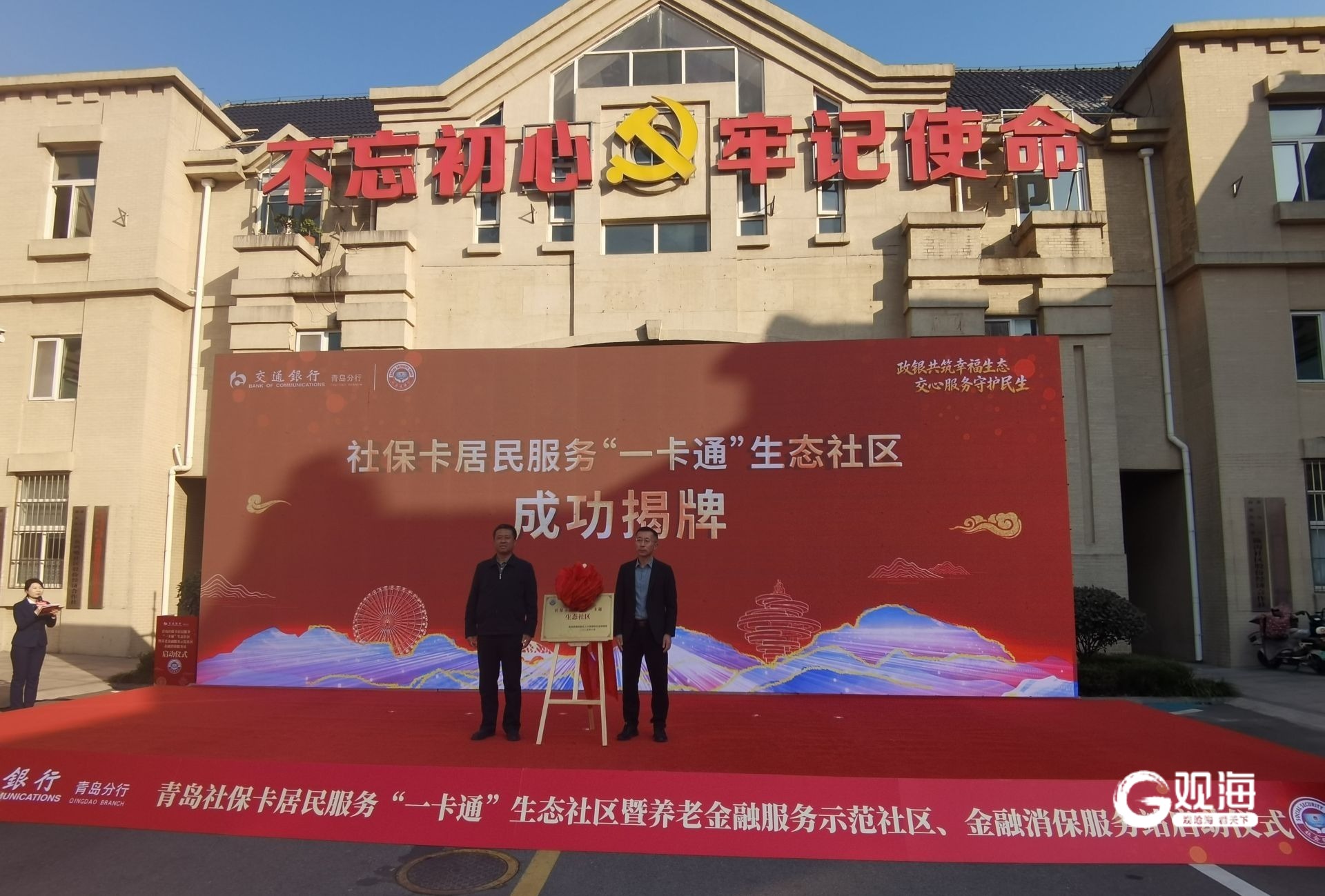 青岛日报社/观海新闻10月27日讯 27日上午,全国首个社保卡金融服务生态社区在青岛西海岸新区薛家岛街道南岛社区正式建成启用。启用仪式上,发布了“养老金融生态社区”服务方案,为“青岛市社保卡居民服务‘一卡通’生态社区”“养老金融服务示范社区”“金融消费者保护服务站”揭牌,并为生态社区特约商户及养老金融志愿者代表分别颁发牌匾和证书。活动现场的“重阳敬老集市”内容丰富、暖意融融,识破“金融圈套”趣味游戏、金融书法、金融剪纸、金融智享生活服务站、公益义诊、金融打卡留念照相馆、海尔康养养老护具展示等深受周边居民的喜爱。
