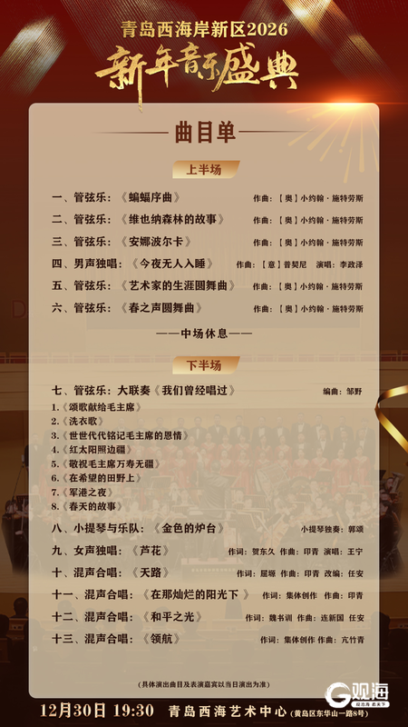 这个年末,不妨选择用音乐告别2025,用艺术迎接2026。详细演出信息及购票方式可通过官方渠道查询。