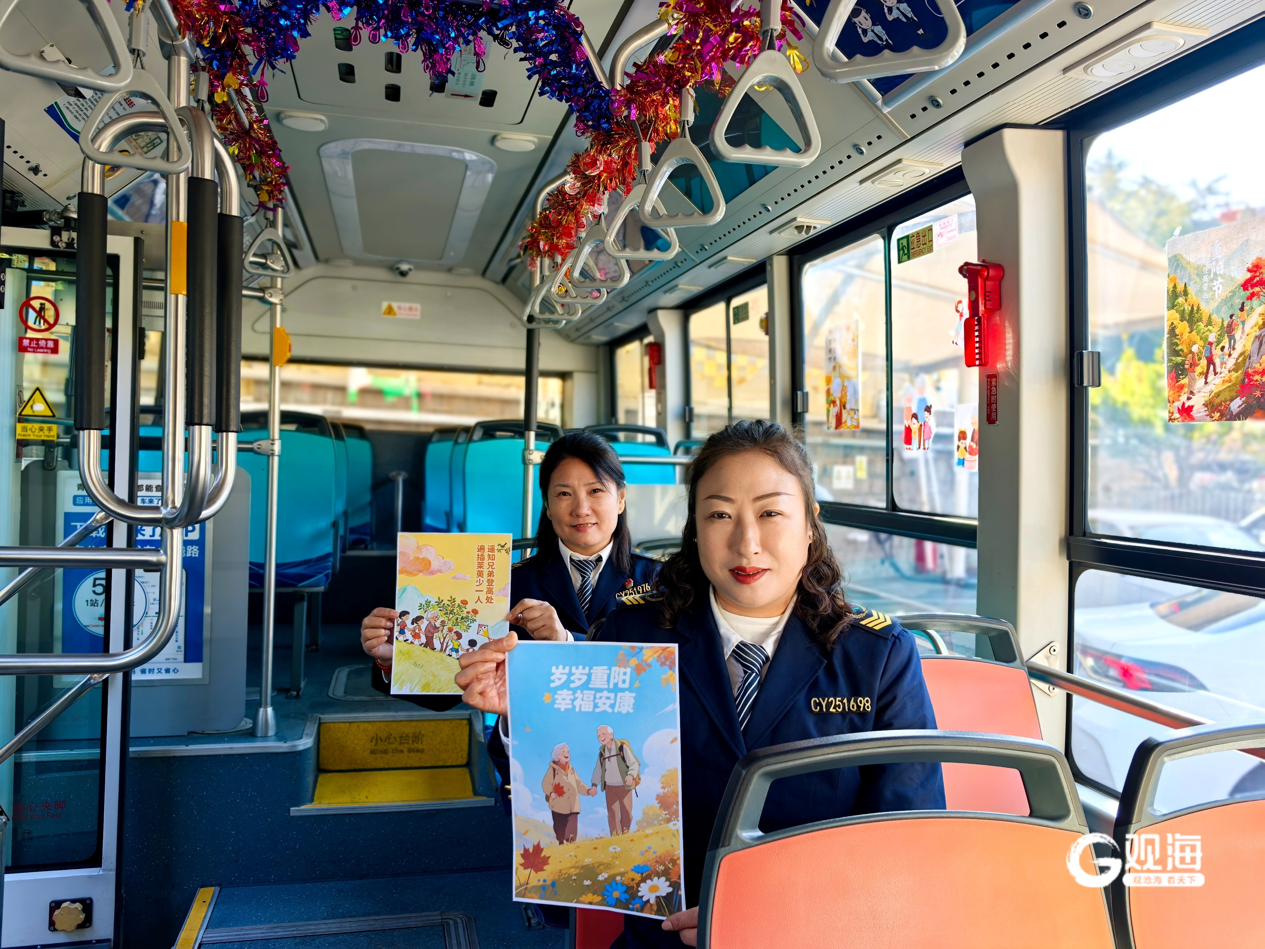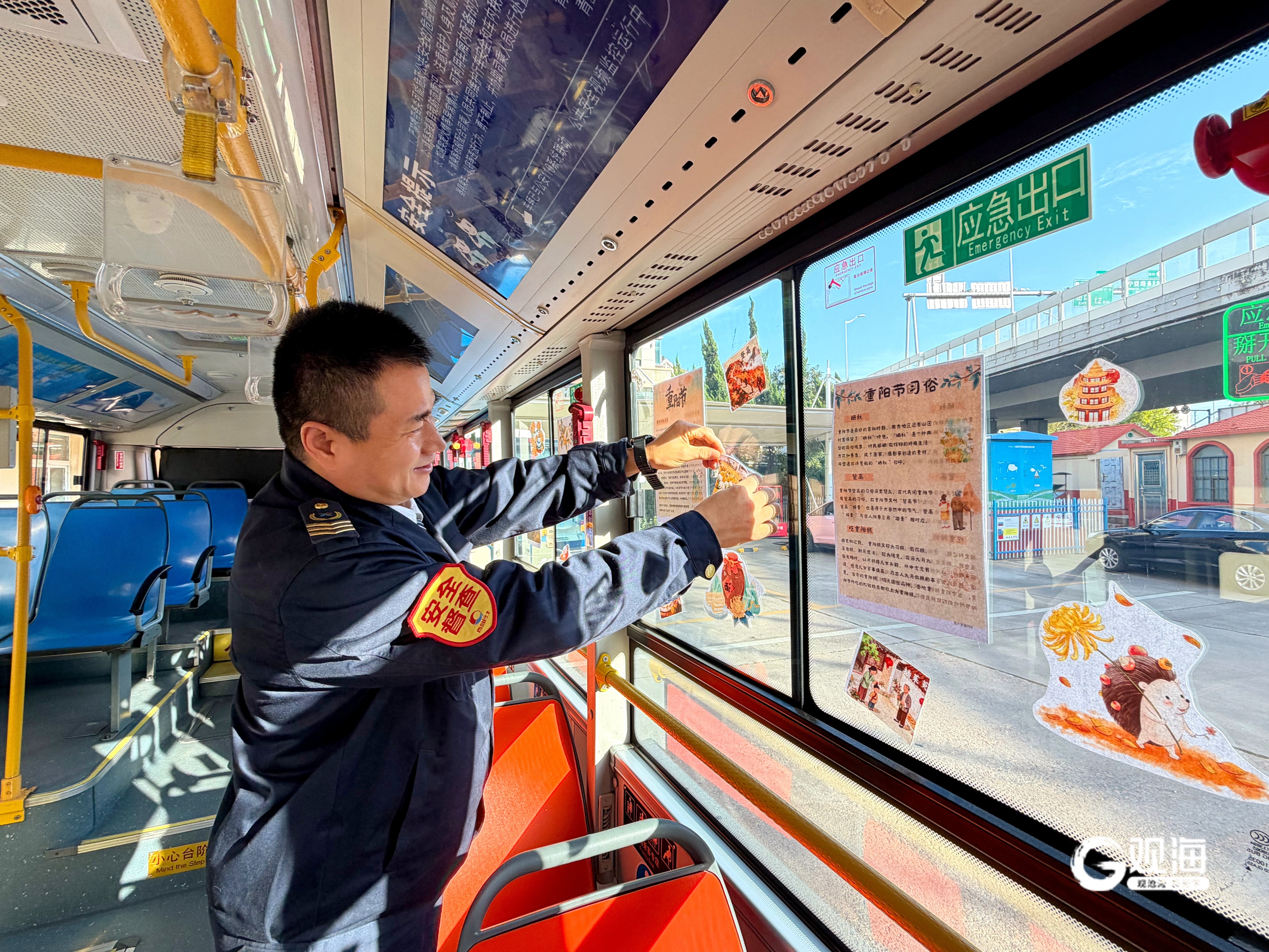 在传统重阳佳节到来之际,两条线路不约而同地打造了主题车厢。36路的张新钢精心整理了“老年人养生小知识”并制作成科普卡片张贴于车内;220路驾驶员张小鹏则用主题图片、经典诗词和节日习俗介绍装点车厢。这些流动的文化课堂,旨在唤醒全社会对老年人更多的关注与陪伴,积极倡导和弘扬尊老敬老爱老的良好社会风尚。