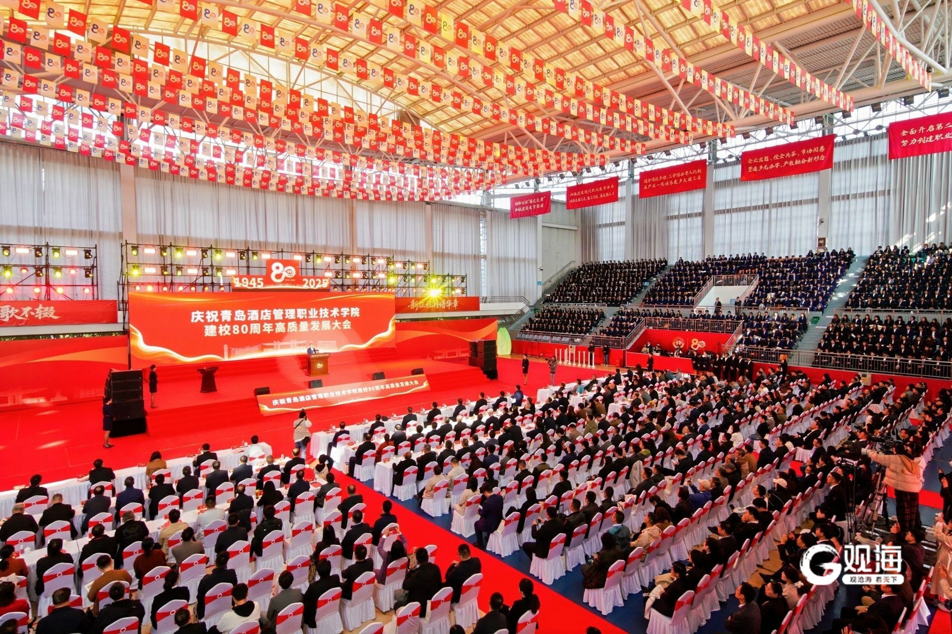青岛日报社/观海新闻10月28日讯 28日,青岛酒店管理职业技术学院庆祝建校80周年高质量发展大会在学校体育馆举行。全体师生员工、海内外校友和关心支持学校建设与发展的各界人士相聚线上线下,共同见证学校八秩荣光。