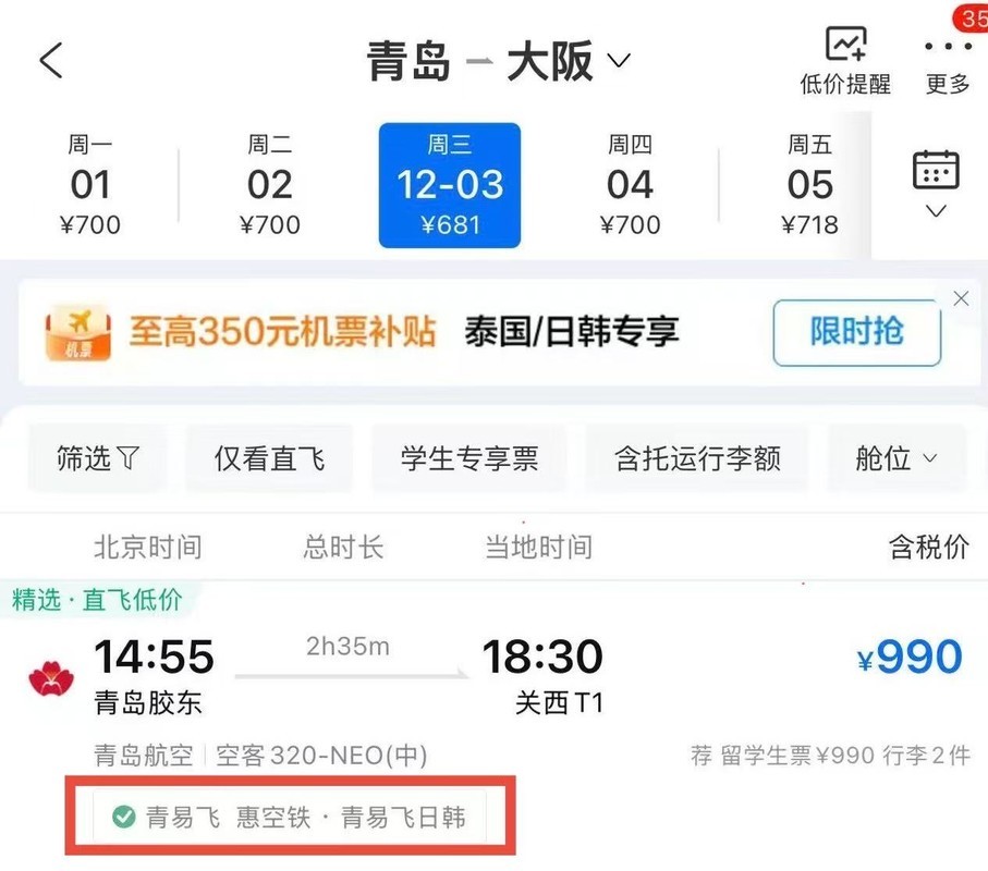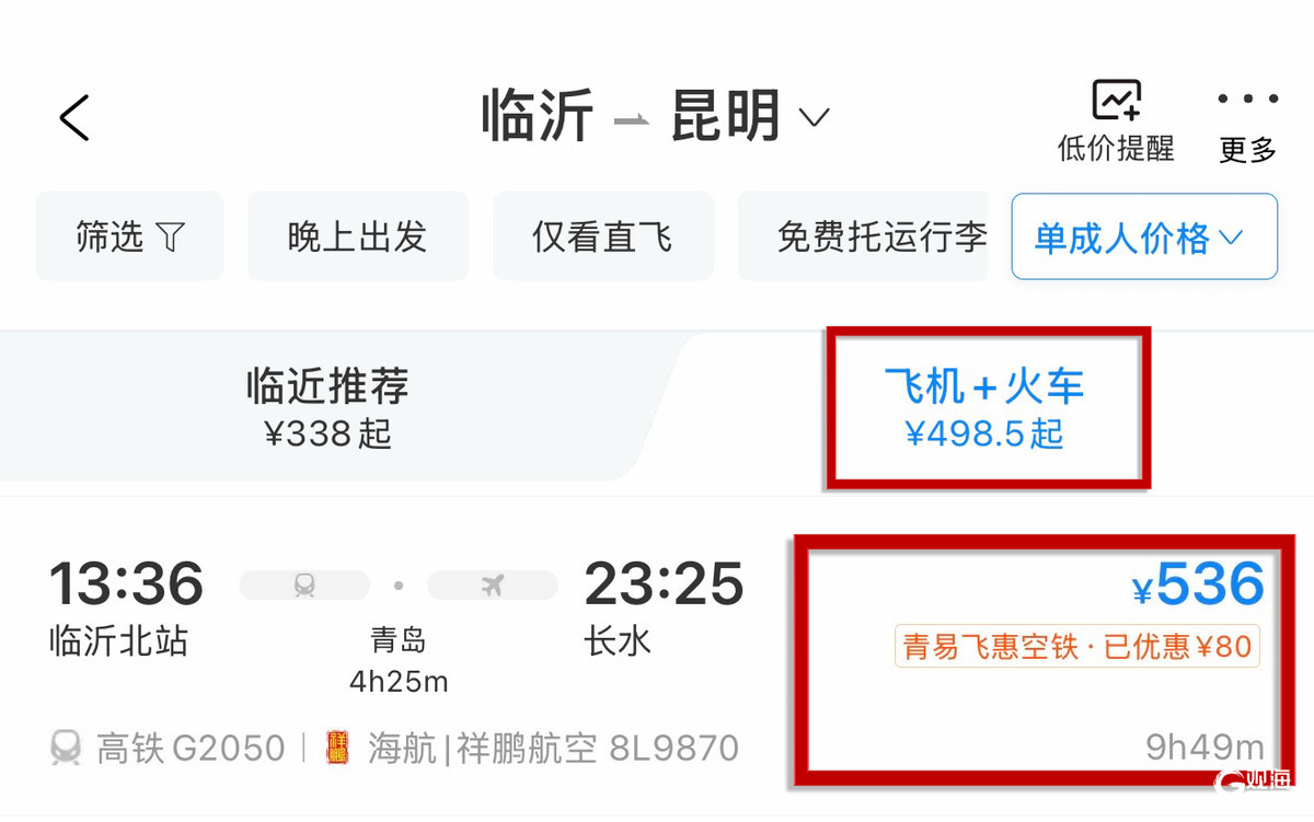 旅客只需在携程App机票频道输入高铁出发城市与航班最终目的地,系统将自动推荐包含“飞机+火车”的联运方案,选择并认准带有“青易飞 惠空铁”专属标识的班次,其显示价格即为已立减后的优惠价格。(温馨提示:高铁班次及中转航线持续更新,数量有限,请以携程实时查询为准。)