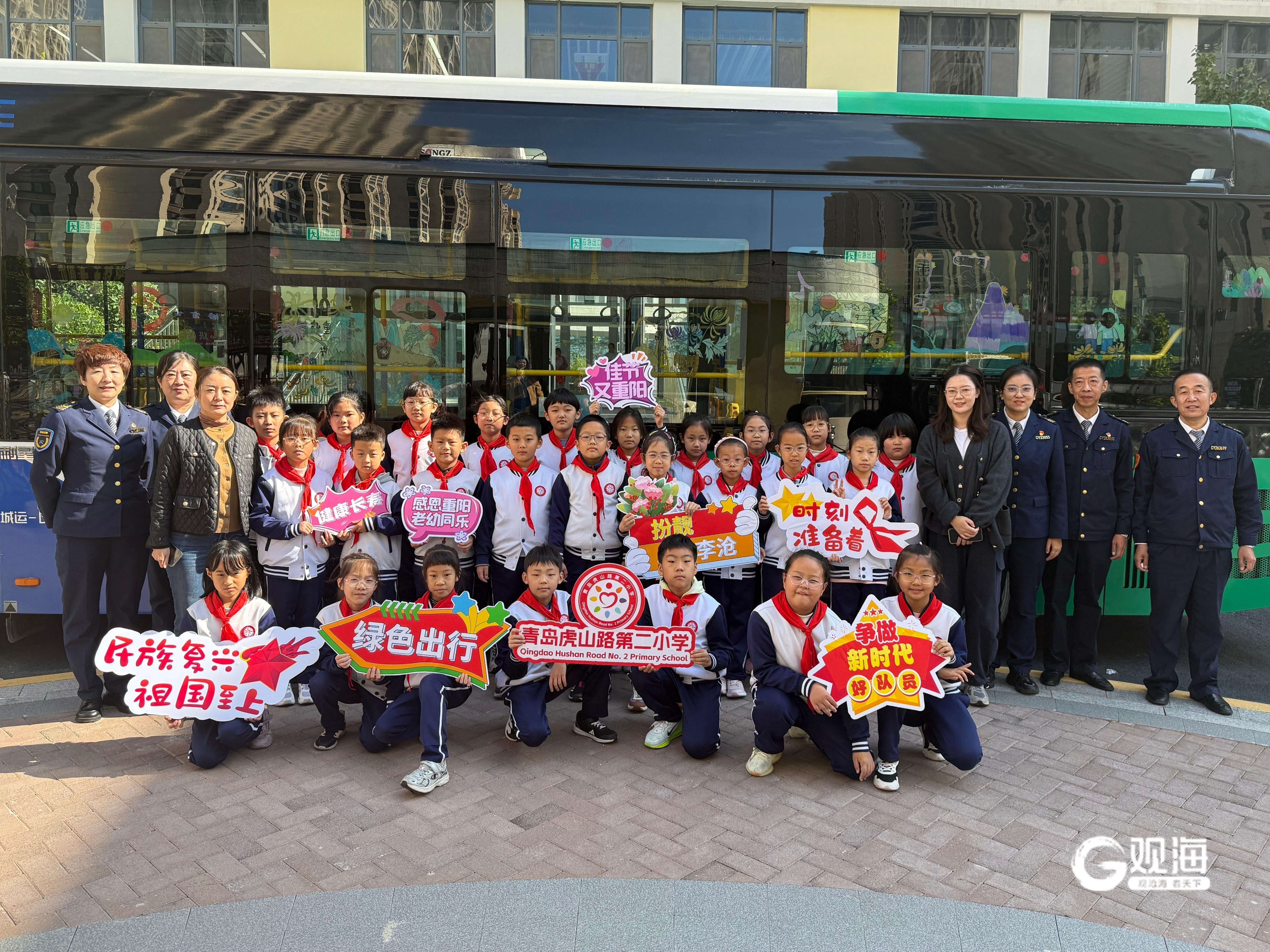 10月27日上午9时,李沧巴士公司驾驶员马希照驾驶318路DD1817号车驶进青岛虎山路第二小学院内,与青岛虎山路第二小学四年二班的学生们一同打造“重阳暖心巴士”。