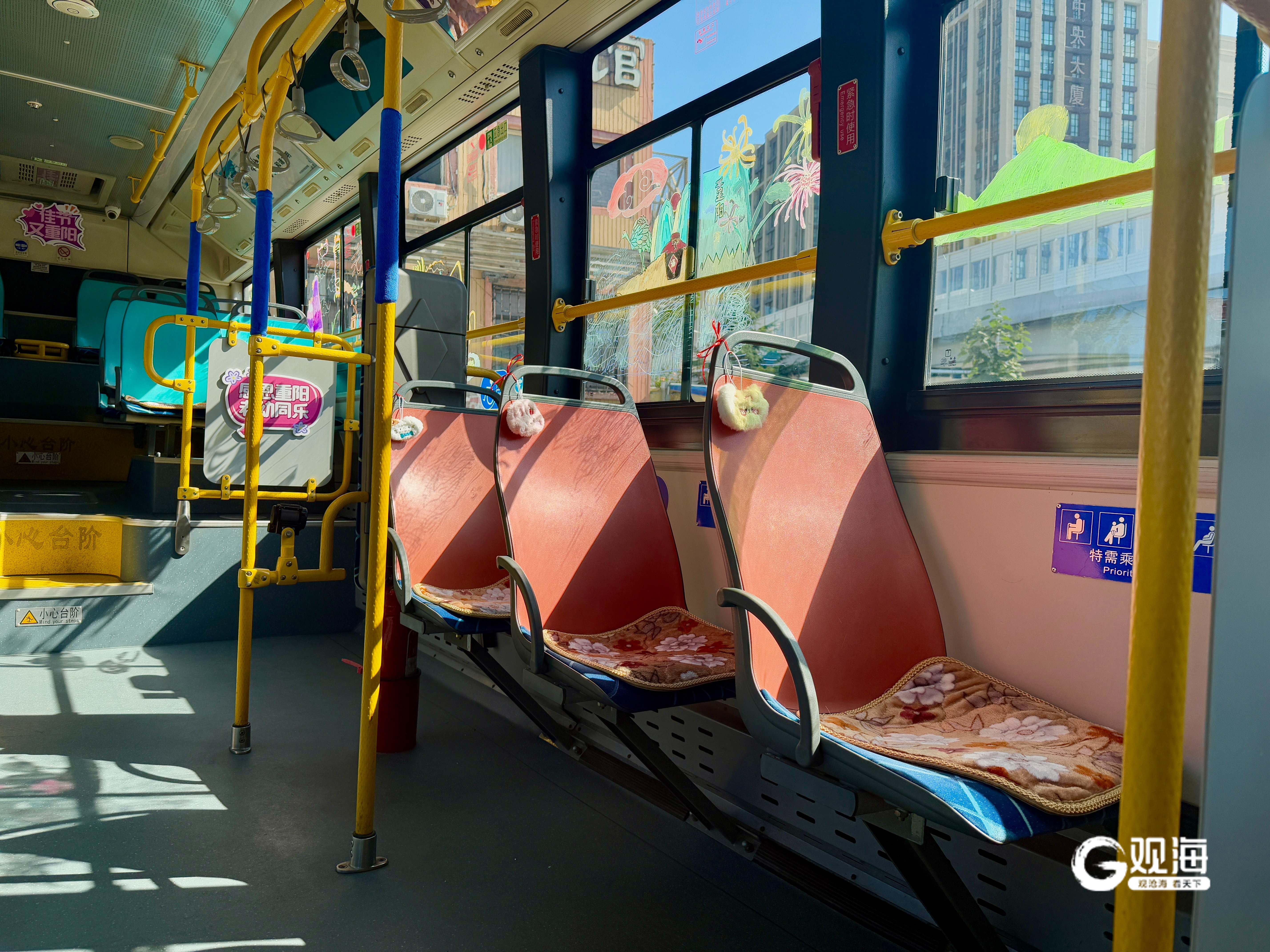 当天下午,“重阳暖心巴士”亮相李沧体育中心车站。踏入车厢,一股浓浓的暖意顿时扑面而来,两侧车窗上的图画,吸引不少乘客驻足观看。