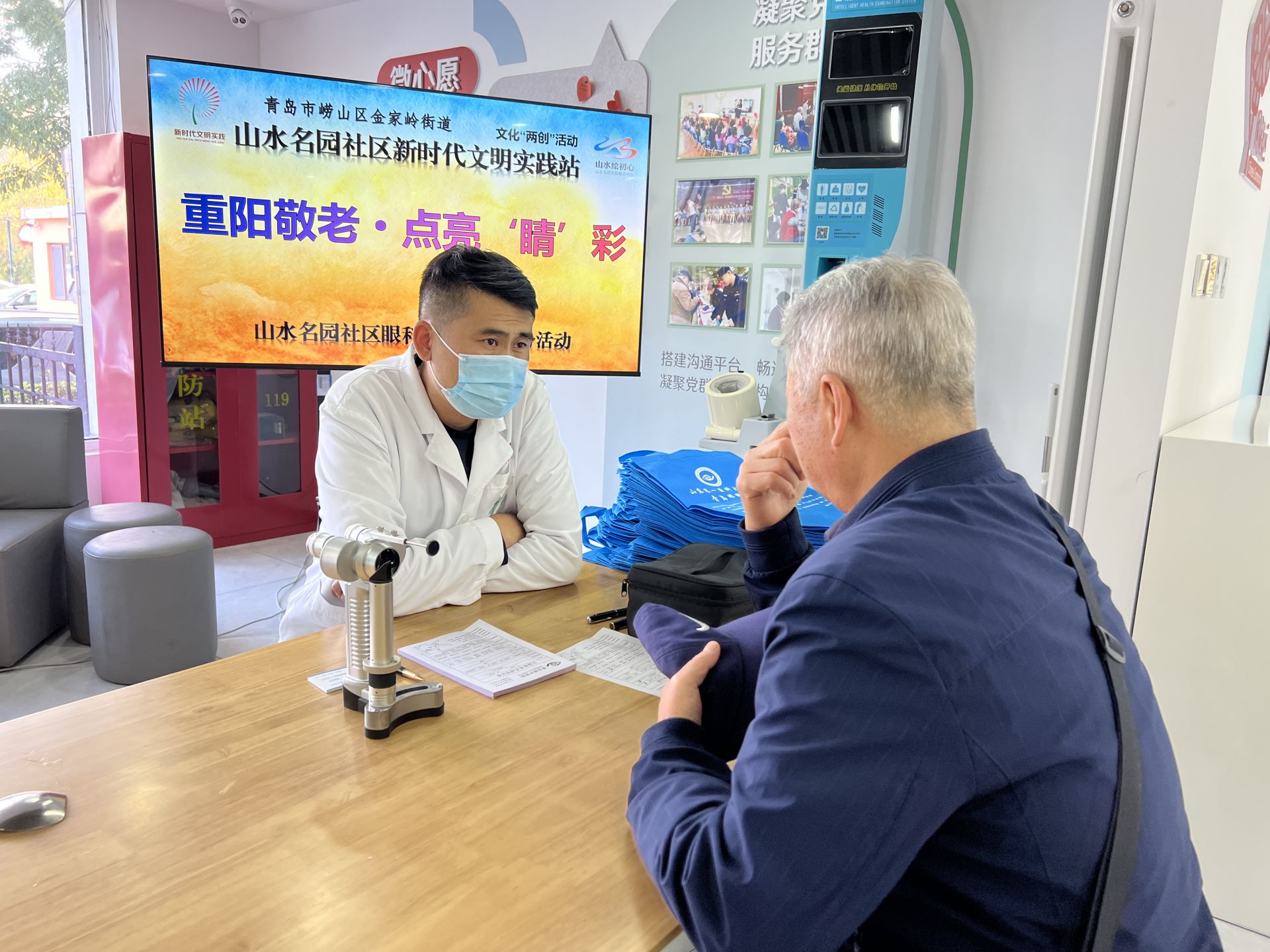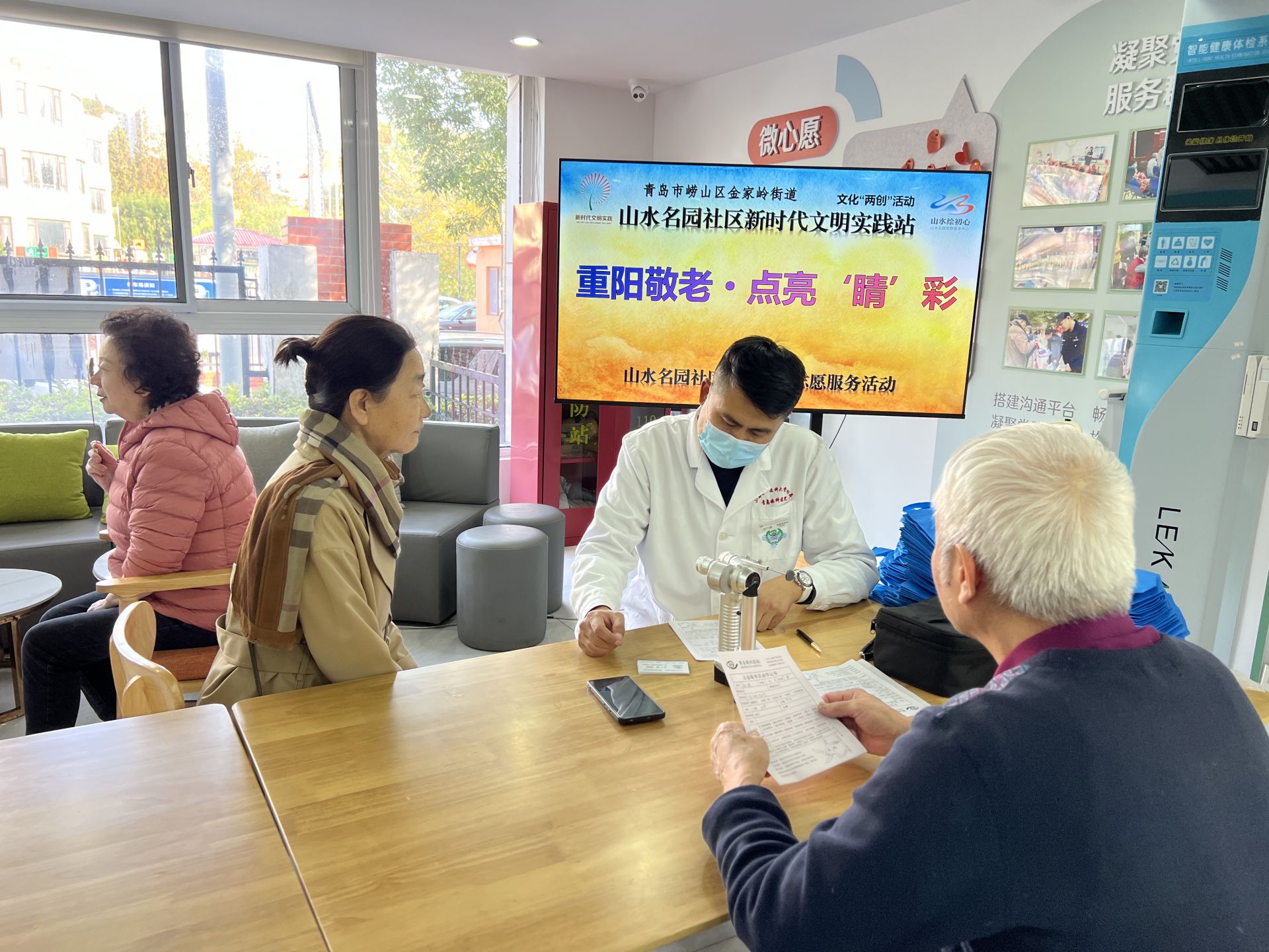 秋意深,情意浓。为弘扬中华民族尊老、敬老、爱老、助老的传统美德,提高老龄群体眼健康水平,10月29日下午,青岛市社区联盟平台联合山东第一医科大学附属青岛眼科医院北部院区在崂山区金家岭街道山水名园社区举行“重阳敬老,点亮‘睛’彩”眼健康筛查活动。此次活动通过专业的眼科检查与科普宣教,为近百名社区老年居民送上“光明关怀”。