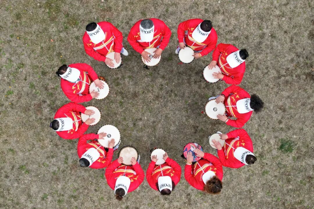 老年人在李沧区九水街道延川路社区养老服务站参加非洲鼓课堂。张鹰 摄