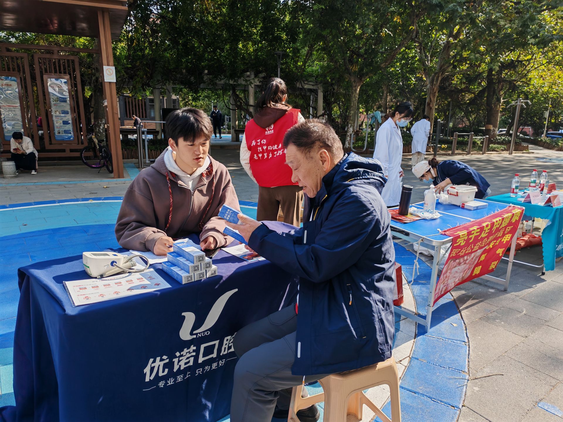 与此同时,健康关怀区域也十分受居民们的欢迎。专业的医护人员耐心地为居民们测量血压,进行细致的眼健康检查和口腔健康科普。在指甲健康服务点,专业的修甲和泡脚杀菌服务让不少老年人倍感舒适与温暖。
