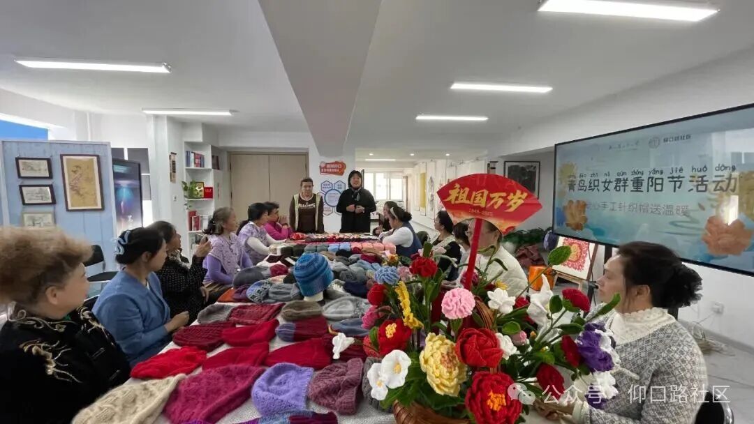 此次活动的发起,源于仰口路社区“张丽/周健手工坊”的暖心联结。为了在重阳节给辖区老人一份特别的礼物,手工坊主动牵线青岛织女群,发起暖冬公益活动,号召巧手“织女”们为老人编织冬帽。消息一出,织女群的姐妹们纷纷响应,利用闲暇时间飞针走线,将对老人的关爱织进每一顶冬帽里。