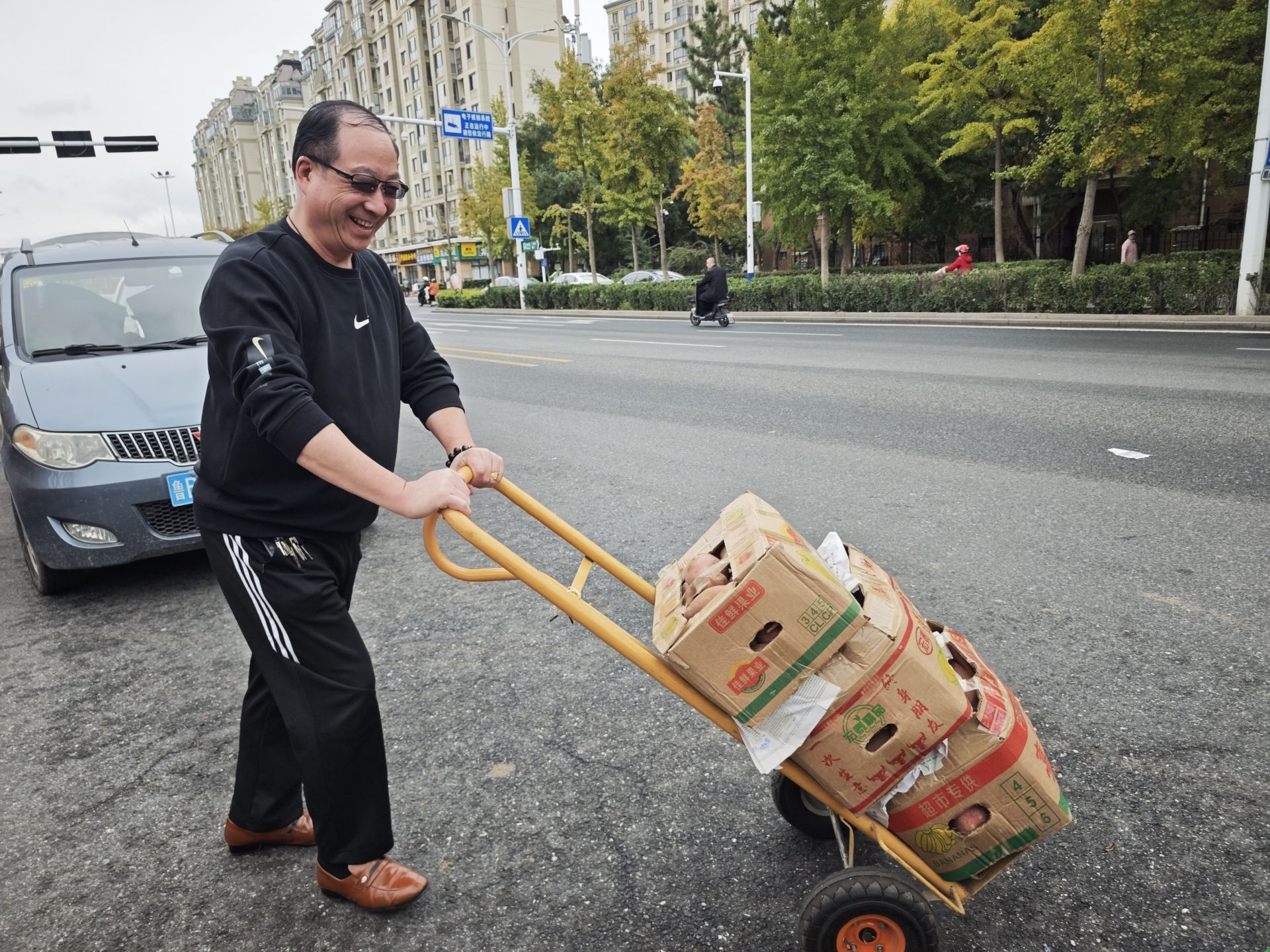 社区居委会主任张雪亮道出活动初衷:“送红薯就是想让居民实实在在感受到‘获得感’‘幸福感’,满足大家对放心食材的需求。”他介绍,种植基地全程绿色无公害管理,田间照料优先雇佣社区居民,既保作物品质,又为居民提供就业机会,“农场还种了小麦、玉米、土豆,收获后都会免费发给居民。看着大家吃得放心,还生出‘这是我们社区自己种的’自豪感,所有付出都值了。”他强调,居民对社区工作的支持是服务动力,“送福利会一直坚持,希望新鲜食材能为居民的深秋餐桌添一份暖,为家庭添一份甜。”