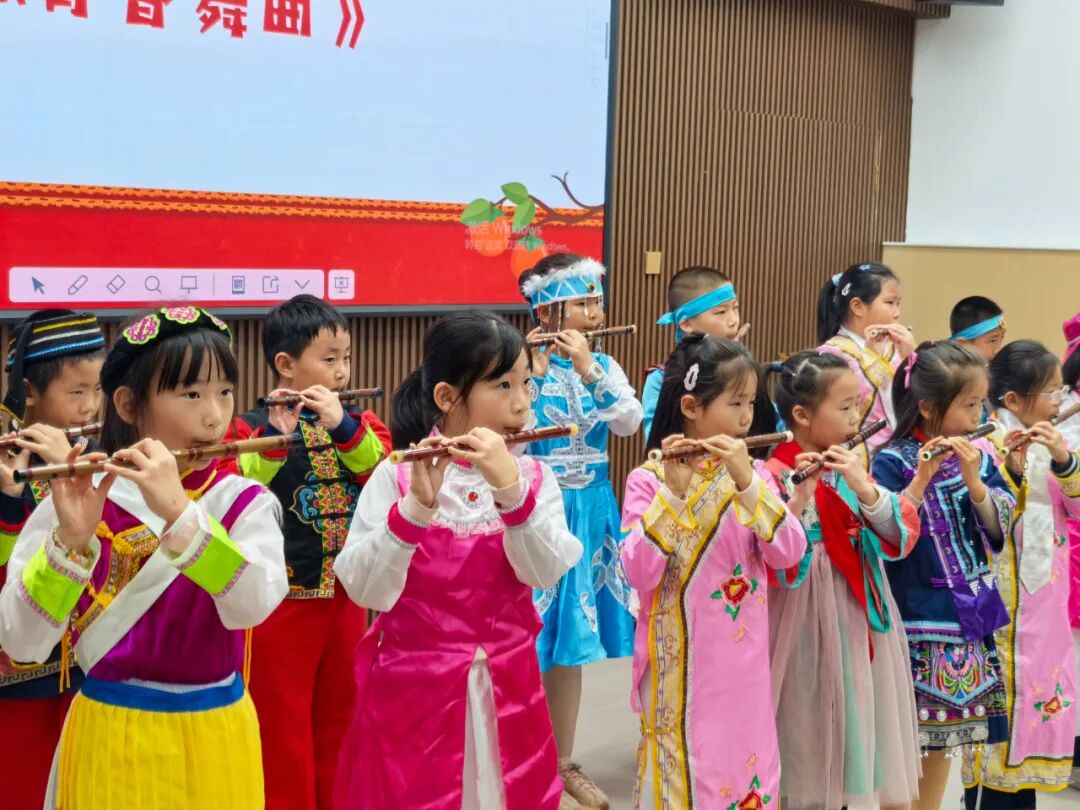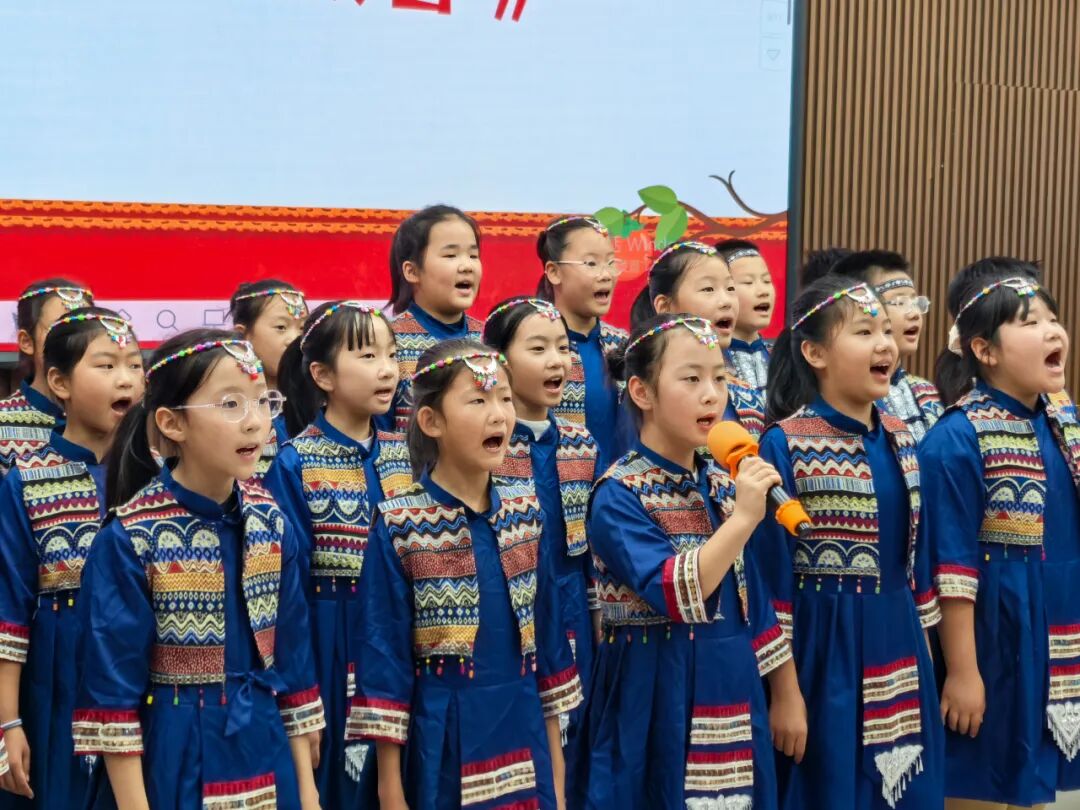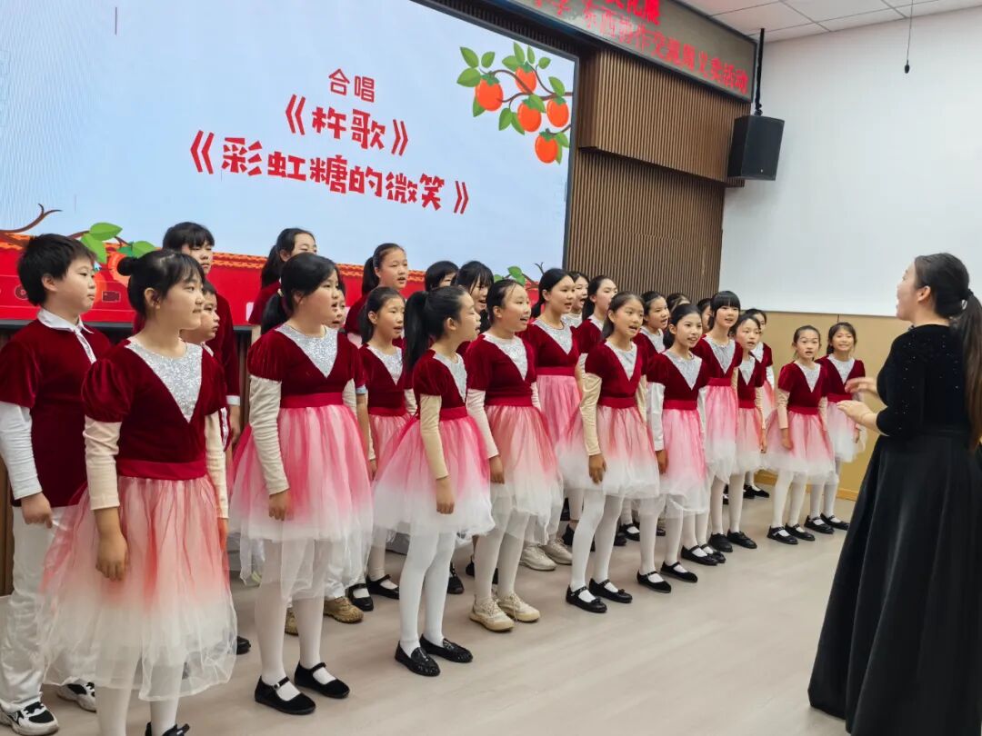 活动在铿锵有力的鼓声中拉开序幕。四年级二班的诗朗诵《金柿满校园》,用诗意语言描绘丰收盛景;竹笛曲《青春舞曲》灵动悠扬;天山合唱团的《杵歌》《彩虹糖的微笑》将氛围推向高潮。
