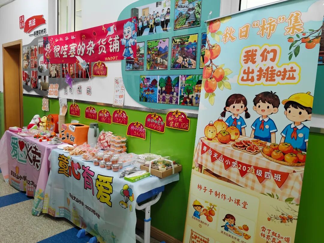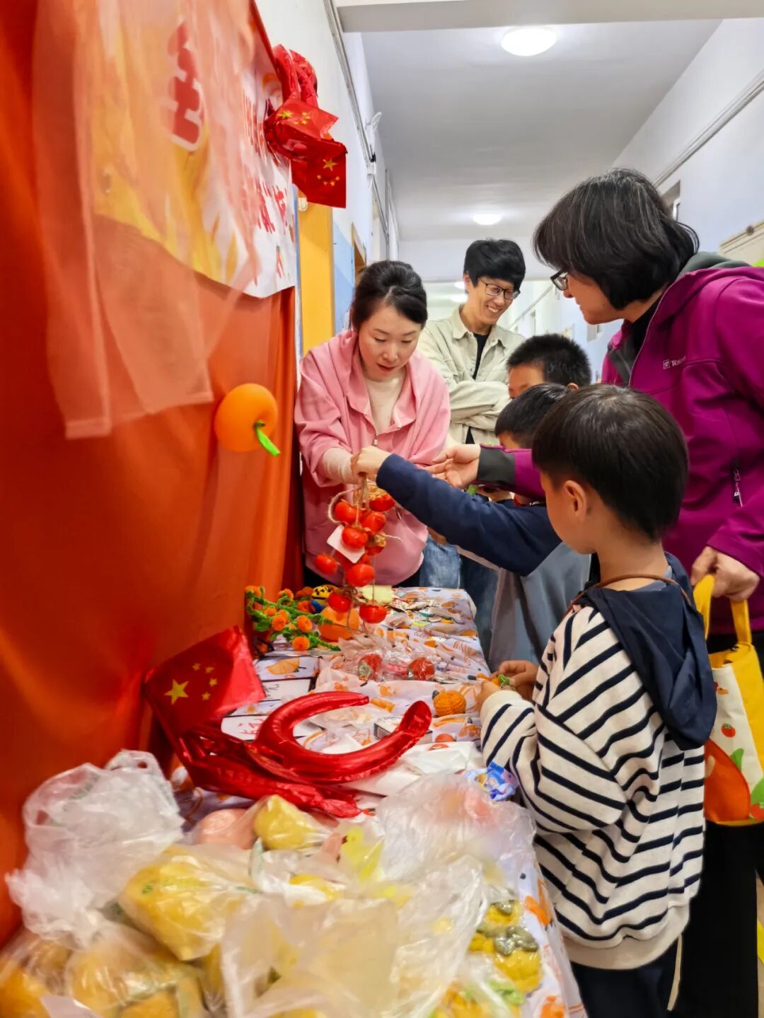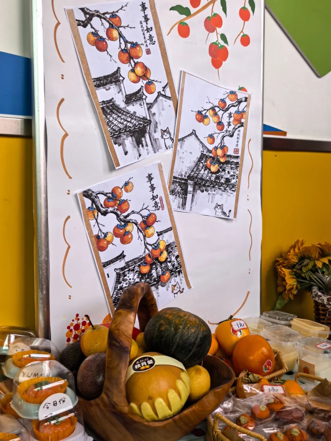 各班精心布置的“柿子美食区、手工区、有奖竞猜区、展示区”人气鼎盛,成为校园里最热闹的风景线。柿子美食区中,清爽可口的柿子饮品色泽诱人,还有口感软糯的柿饼,带着阳光晾晒后的醇厚风味,各类创意美食收获师生们的连连称赞。手工区的摊位前更是人头攒动,同学们亲手制作的柿子主题书签精美别致;黏土捏制的柿子摆件栩栩如生,一件件充满巧思的作品引得大家纷纷驻足欣赏。有奖竞猜区的欢呼声此起彼伏,展示区里的优秀作品则静静诉说着同学们对秋日的热爱与创造力,每一处区域都洋溢着欢乐与温馨的氛围。