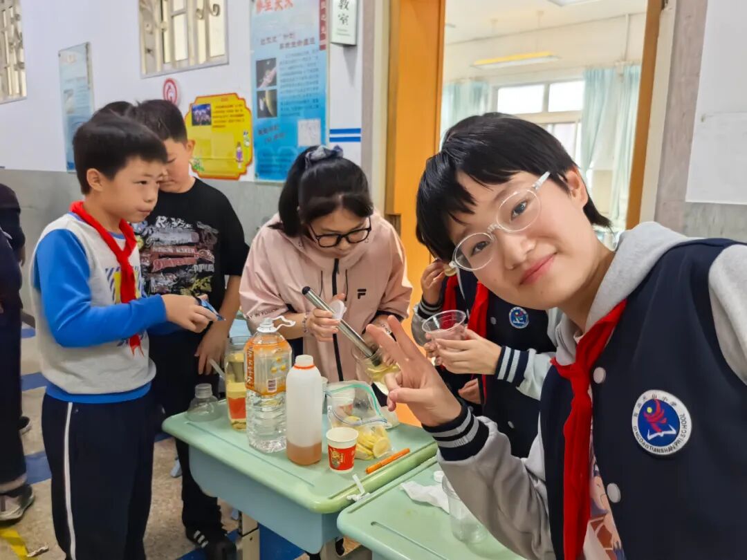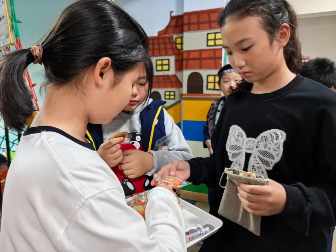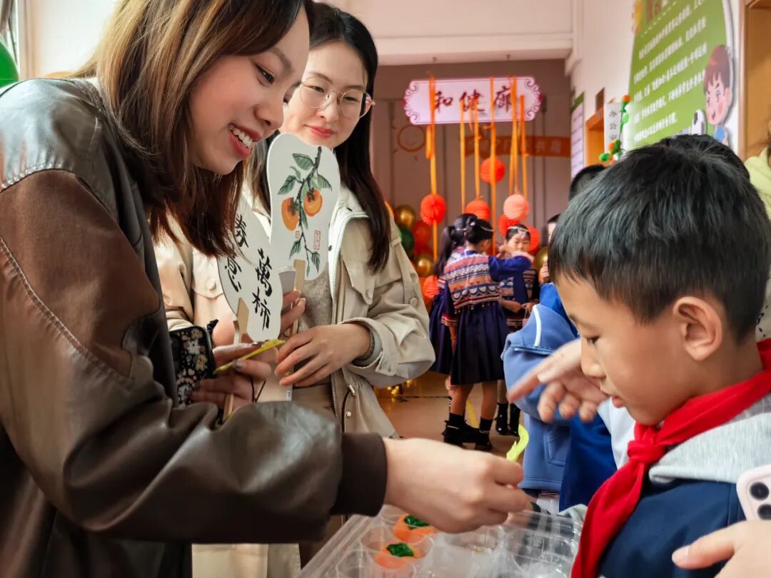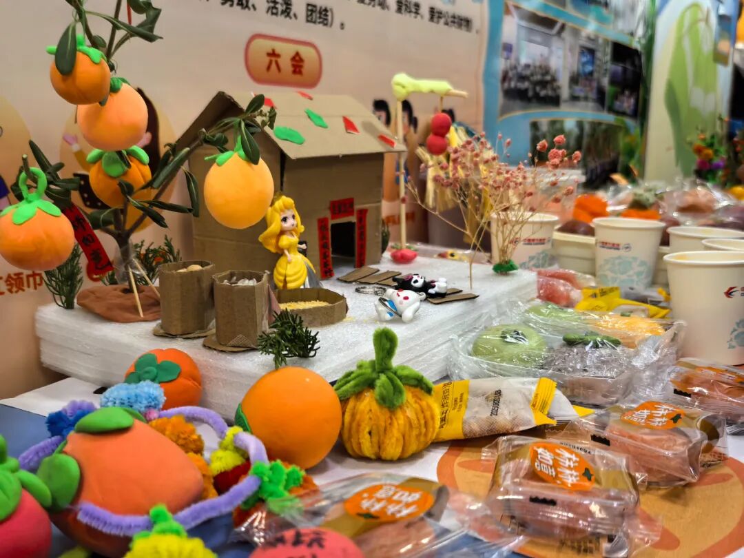 各班精心布置的“柿子美食区、手工区、有奖竞猜区、展示区”人气鼎盛,成为校园里最热闹的风景线。柿子美食区中,清爽可口的柿子饮品色泽诱人,还有口感软糯的柿饼,带着阳光晾晒后的醇厚风味,各类创意美食收获师生们的连连称赞。手工区的摊位前更是人头攒动,同学们亲手制作的柿子主题书签精美别致;黏土捏制的柿子摆件栩栩如生,一件件充满巧思的作品引得大家纷纷驻足欣赏。有奖竞猜区的欢呼声此起彼伏,展示区里的优秀作品则静静诉说着同学们对秋日的热爱与创造力,每一处区域都洋溢着欢乐与温馨的氛围。