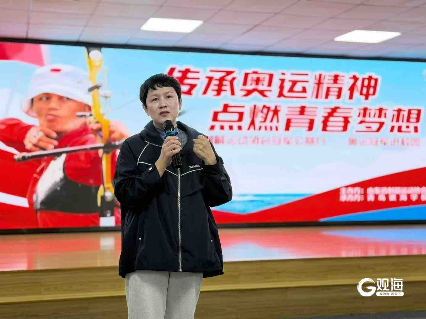 活动伊始,精彩的视频回顾了张娟娟奥运夺冠的精彩瞬间,让现场师生深切感受到竞技体育的热血与力量。随后,主持人详细介绍了张娟娟的辉煌履历:从打破韩国队24年垄断的奥运传奇,到如今深耕体育事业的行业标杆,她用坚韧与专注诠释了“百步穿杨”的真谛。
