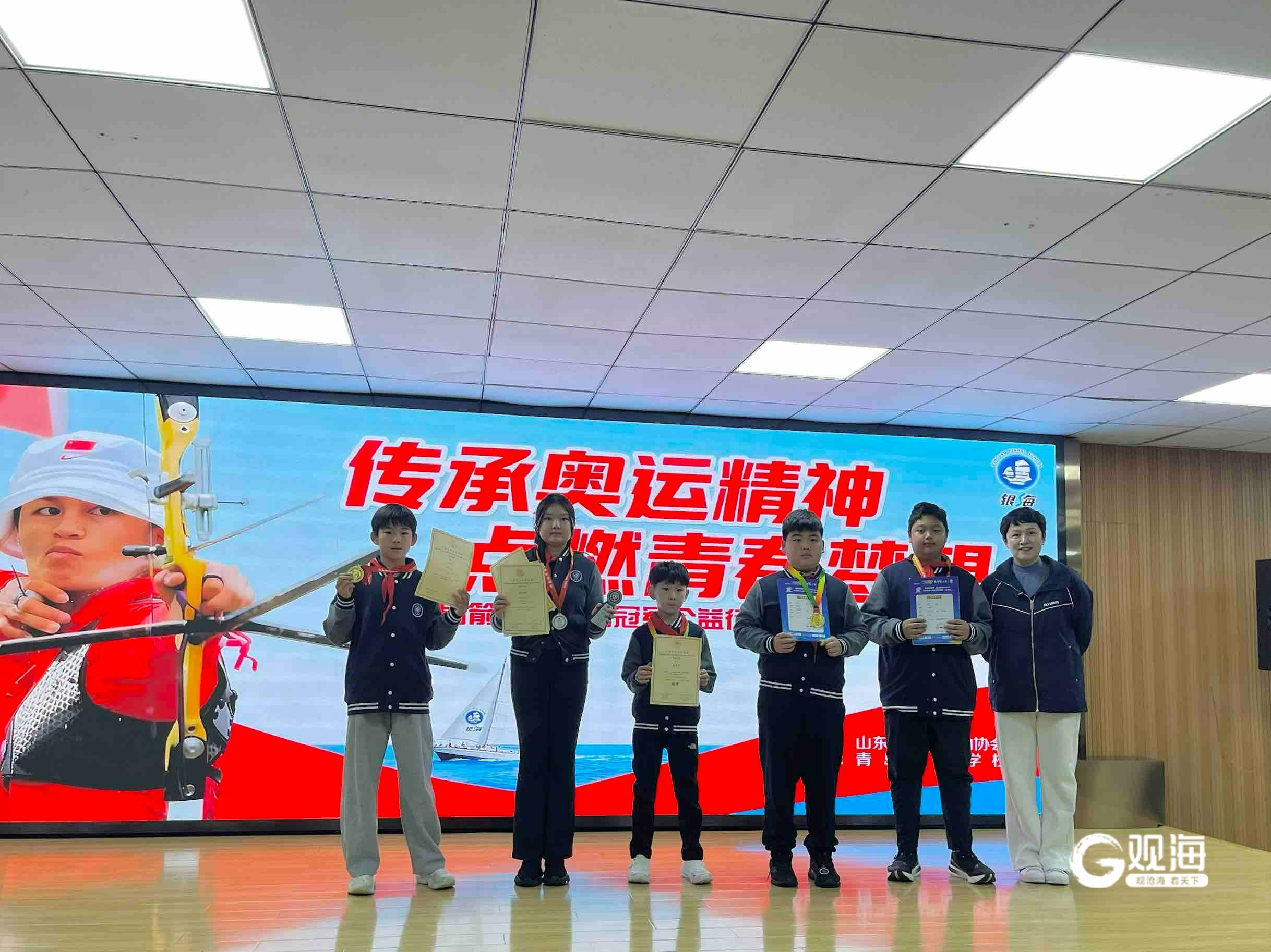 活动现场还见证了银海射箭小将们的荣耀时刻。现场为银海学校陈忠翰、姚兆南等在亚洲赛事、省市级联赛中屡获佳绩的同学颁奖。自2022年组建射箭队以来,银海学校秉持“以射育心、以射健体、以射启智”理念,培养出一批批优秀选手,在各级赛事中崭露头角。 (青岛日报/观海新闻记者 杨琪琪)
