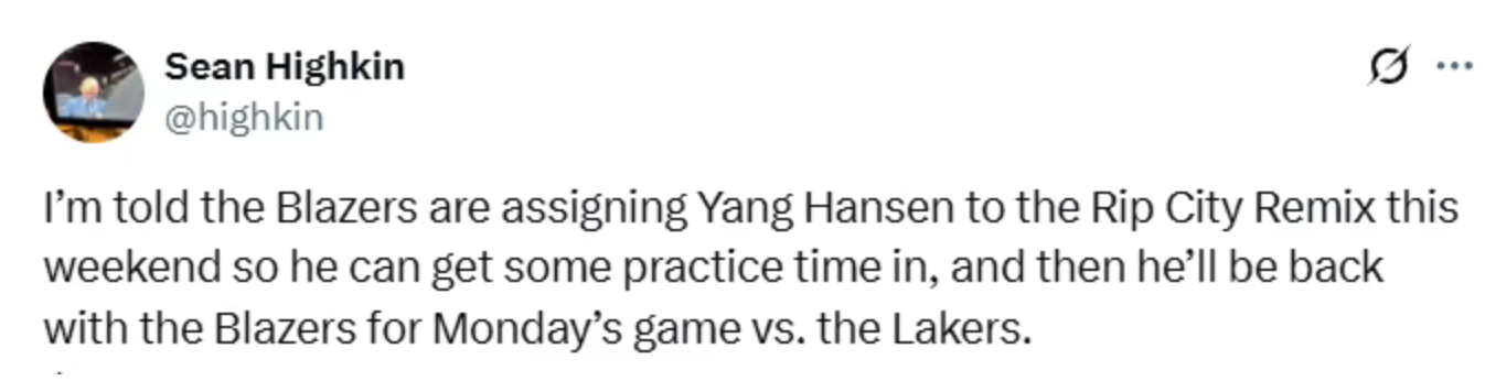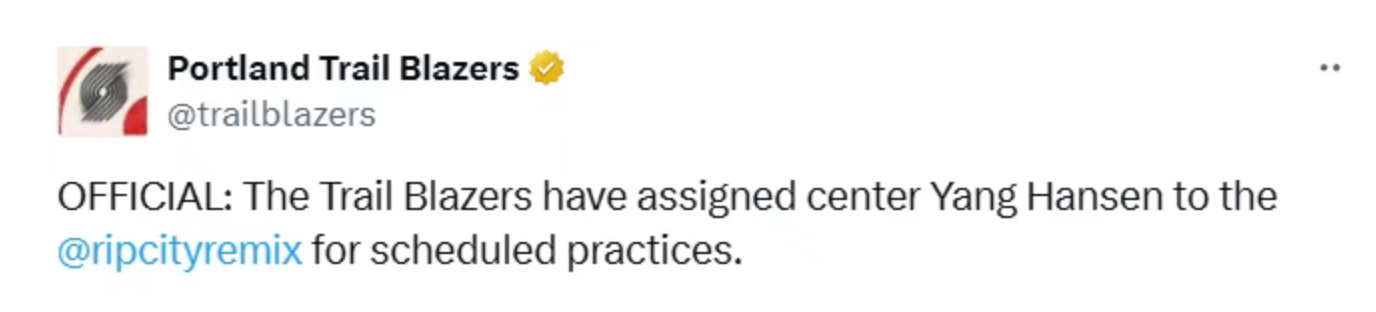 开拓者队记透露,开拓者此举是为了让杨瀚森收获更多的训练时间,并且他将在周一与湖人的比赛中重回球队。若之后杨瀚森在开拓者的出场时间有限,那么他本赛季将在两支球队之间频繁往返。
