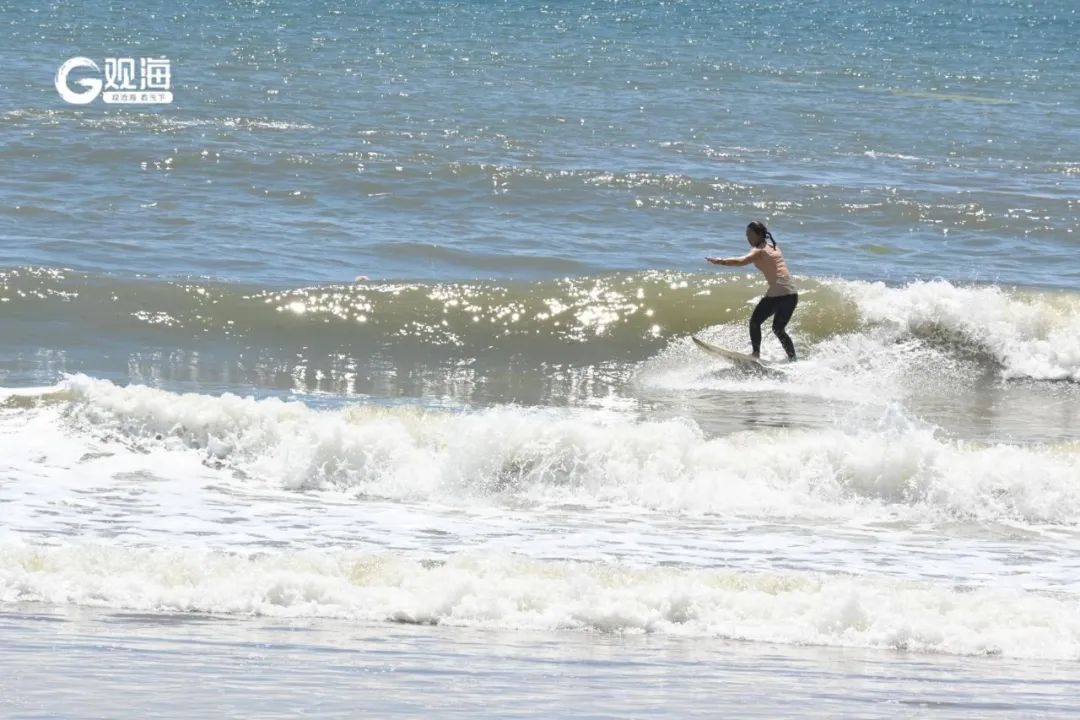 “除专门到这边学习或参加比赛的冲浪爱好者外,越来越多普通游客也加入到冲浪体验的行列。”