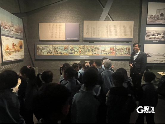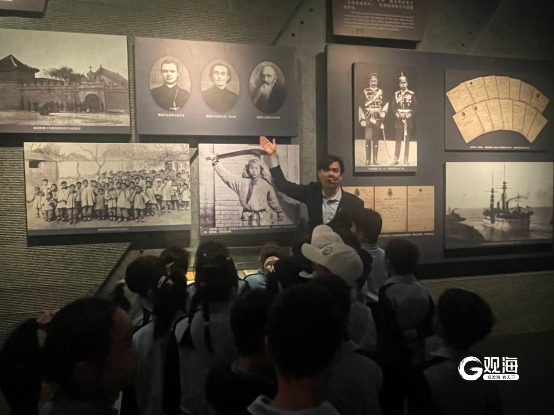 在讲解员的带领下,同学们依次参观了各个展区。通过千余件珍贵文物、历史照片以及场景复原、多媒体互动等方式,大家更加深刻地了解了青岛从建置到被德日侵占,再到主权回归的曲折历程。