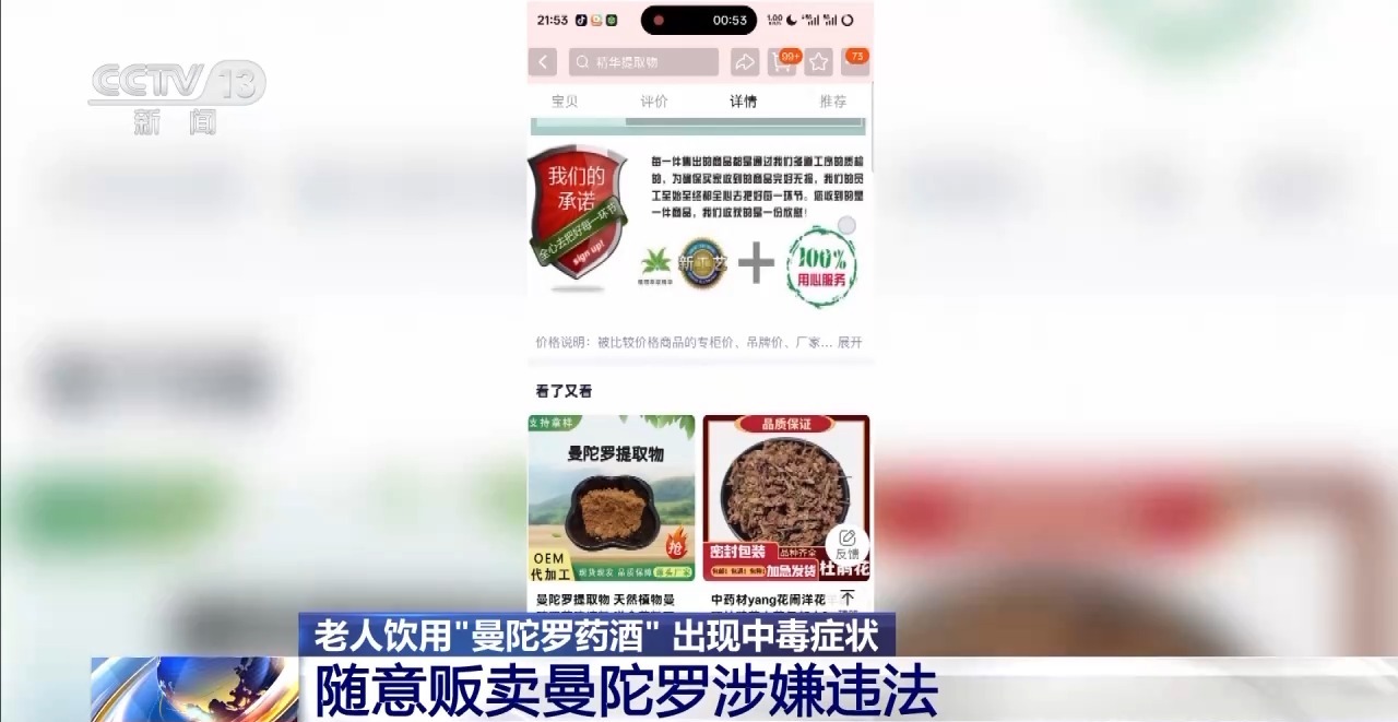 记者在检索出的大量店铺中,只有一家商户在主页标明了“只限于外用”。在某短视频平台,记者在一个曼陀罗泡酒视频的评论区看到,有网友表示“只能外用,不能内服”;在另一条相关短视频的评论区,有网友表示“曼陀罗花是剧毒”,还有一位网友表示“周围有老年人用曼陀罗种子泡酒喝”。