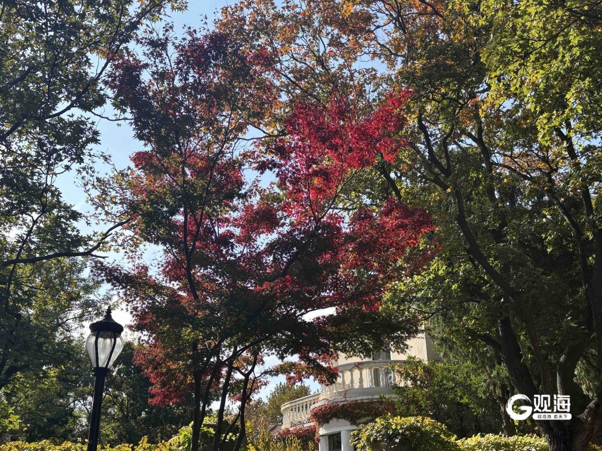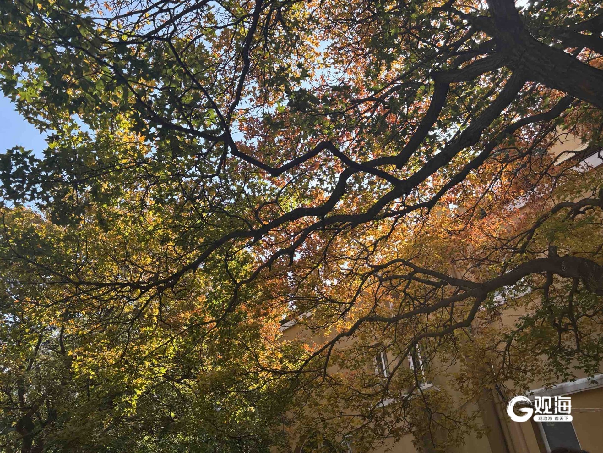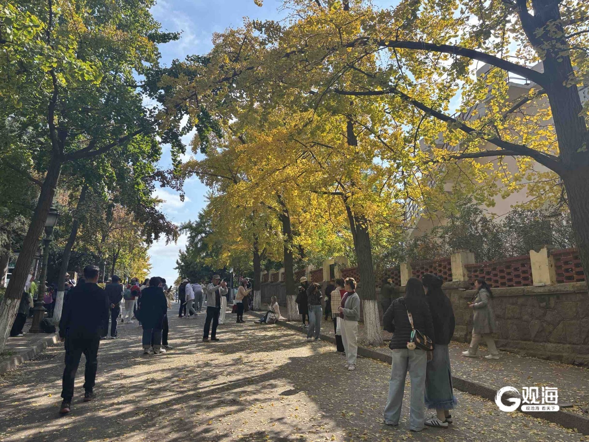 如果说青岛是一幅水彩画,八大关的秋日叙事想必是其中最浓郁的色彩。踏进八大关,时光便慢了下来。函谷关路的梧桐叶正一片片旋落,在地上铺成金黄的毯子;居庸关路的银杏到了最灿烂的时候,阳光穿过枝叶,洒下斑驳光影;嘉峪关路的五角枫红得炽烈,与蓝天相映成趣。从山海关路走到第二海水浴场,沿途打卡花石楼、公主楼......每一个转角都能遇见不一样的秋色。
