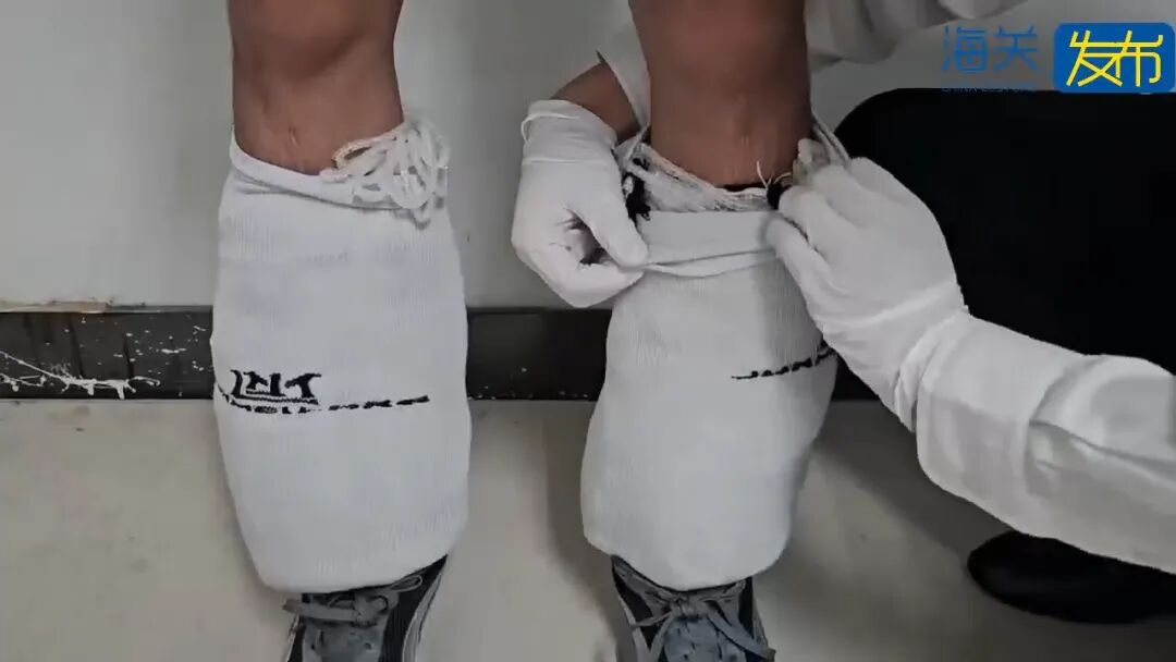 当日,罗湖海关在对进境旅客进行监管时,发现一名男性旅客进入海关监管区未向海关申报,且神情紧张,步伐缓慢,海关关员立即对其进行拦截检查。经检查,海关关员在该旅客小腿处发现用白色运动袜绑藏的各色疑似水晶珠串共计40捆。后经深圳海关工业品检测技术中心鉴定,以上珠串分别为绿水晶珠串6捆,黄水晶珠串10捆,水晶珠串14捆,绿柱石、海蓝宝石珠串10捆。