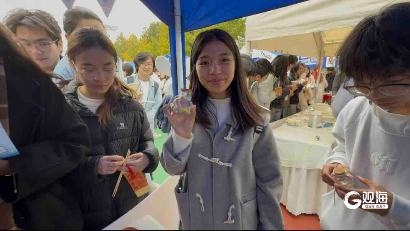 作为本届文化节的核心特色,“蓝色梦想”互动区成为最温情的片段。中外学子们在蓝色心愿卡上郑重写下对海洋、对世界、对未来的愿望和祝福,投入“梦想之海”,并亲手制作象征智慧与希望的“蓝色果实”纪念品。这一刻,个人情怀与国家发展、人类愿景同频共振,青春的涓流汇入时代的江海,生动诠释了“蓝色梦想”的深远意涵。参与者们手持盖满各国印章的“船票”兑换纪念品,在主题相框前打卡留念,满载而归。