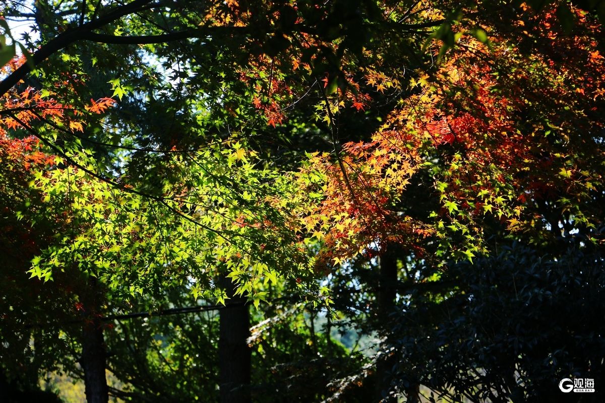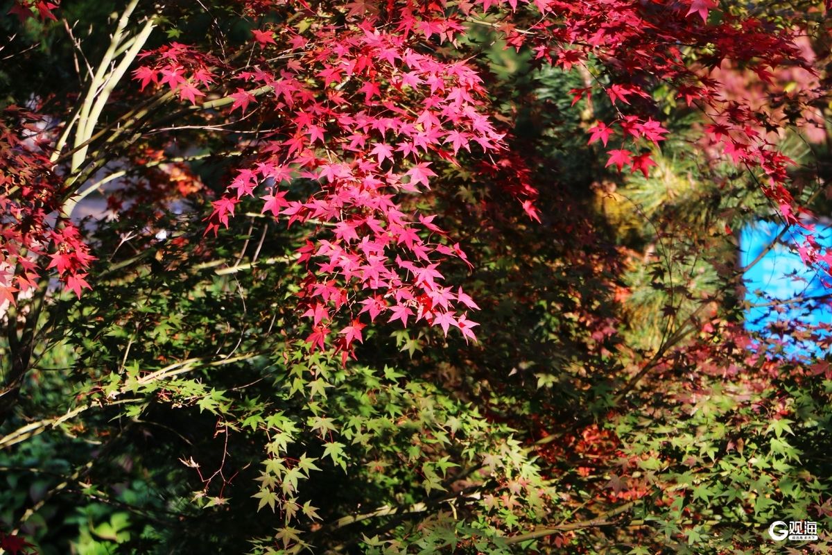 青岛日报社/观海新闻11月7日讯 深秋的青岛北岭山森林公园,是青岛最浓烈的秋日美景。漫山林木褪去青翠,换上斑斓盛装,红枫燃成簇簇火焰,黄栌晕开暖橙霞光,深绿松柏点缀其间,层林尽染如打翻的调色盘。