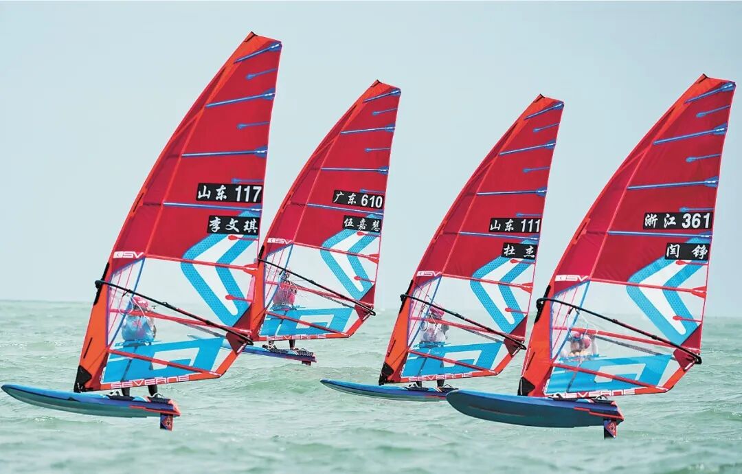 广东汕尾,运动员在十五运会帆船项目女子水翼帆板级比赛中。新华社记者 晋美多吉 摄
