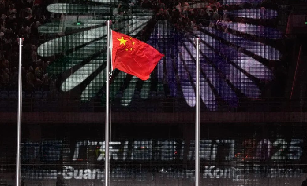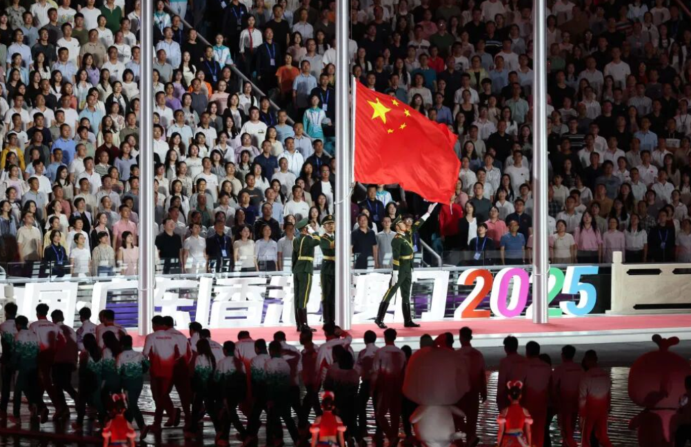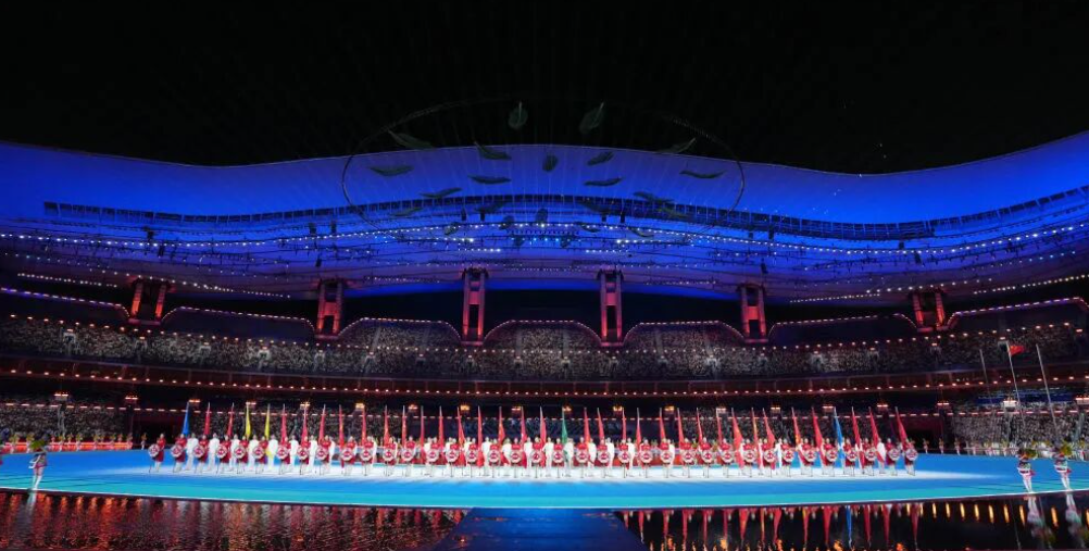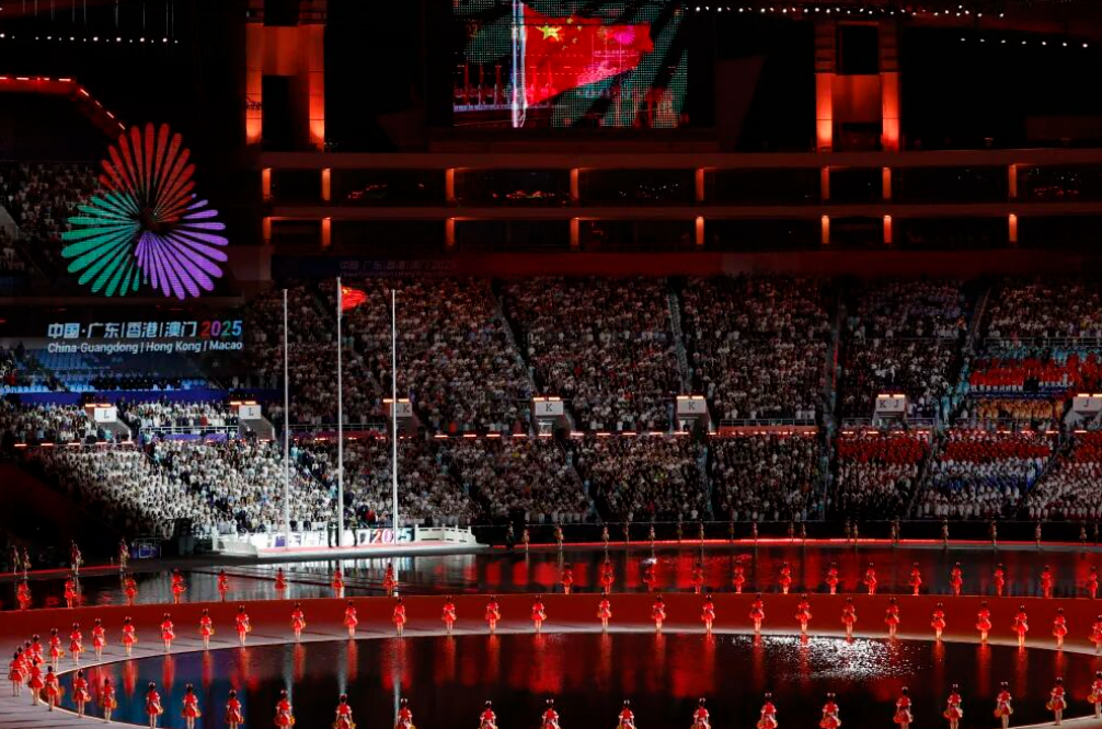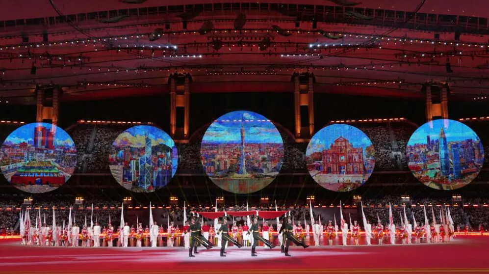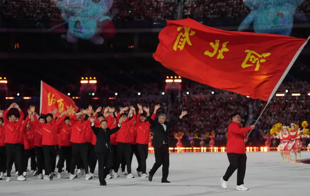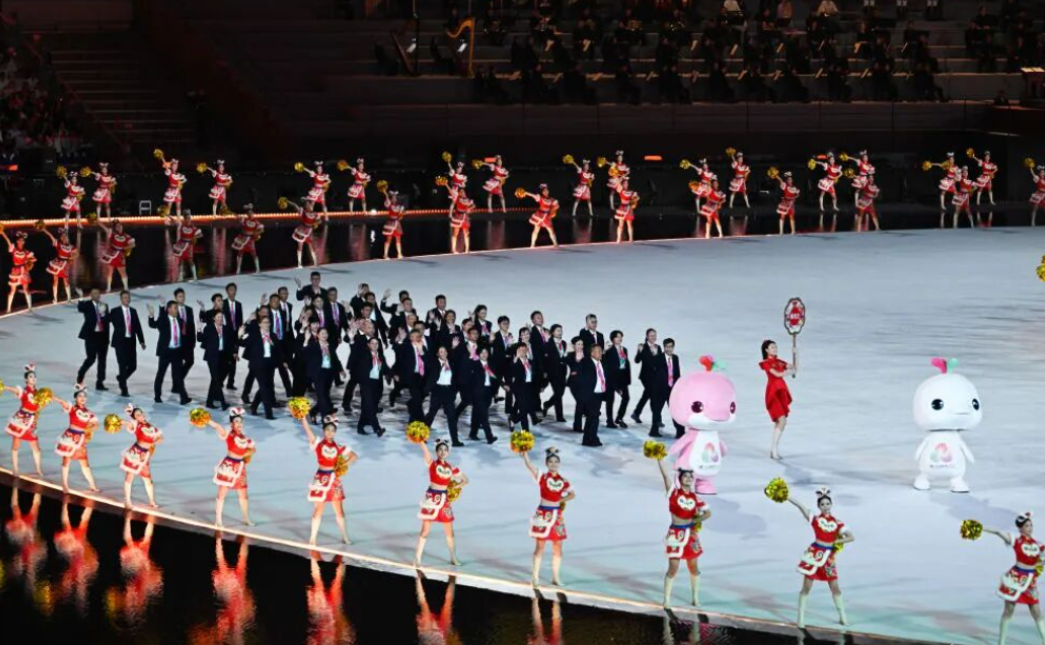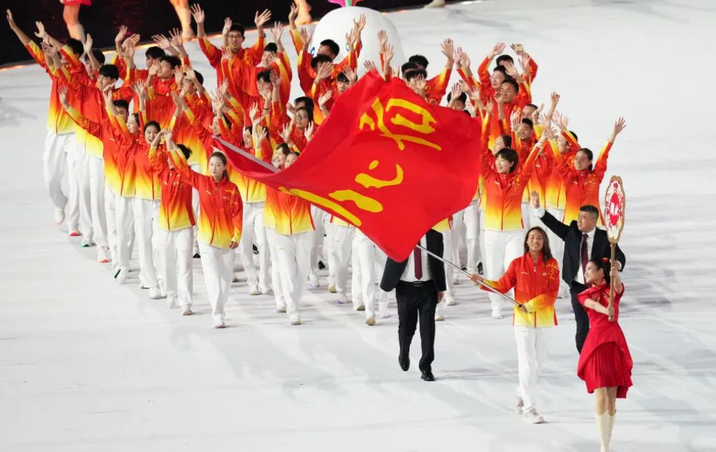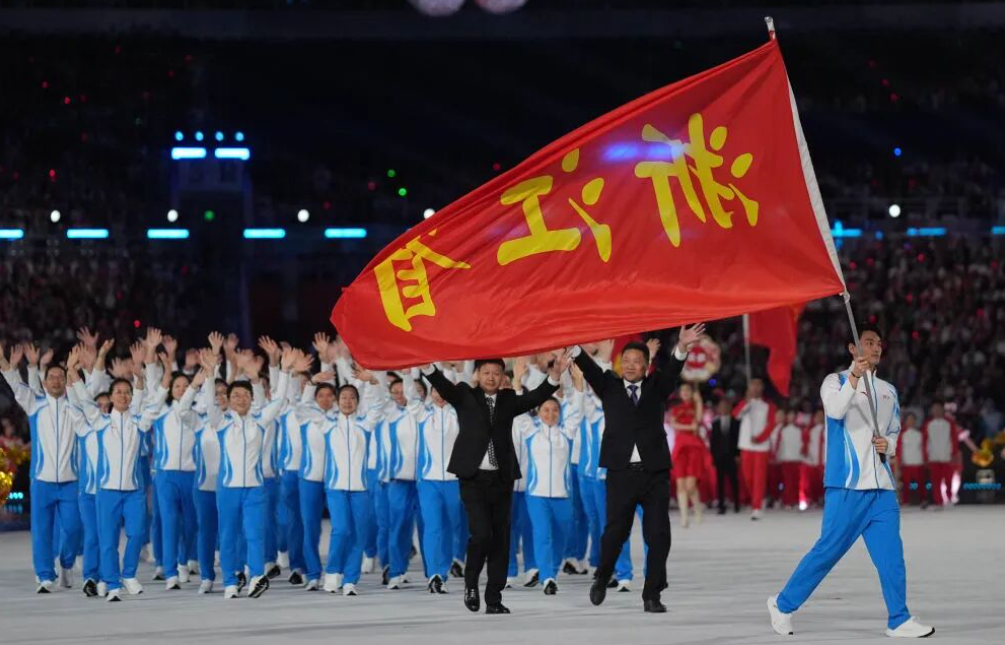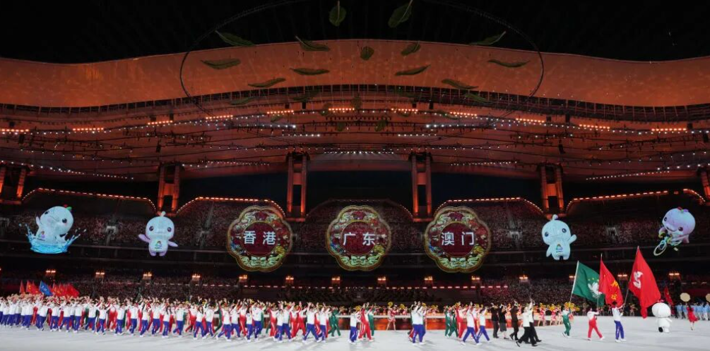 广东省体育代表团、香港特别行政区体育代表团、澳门特别行政区体育代表团在入场仪式上共同入场。新华社记者 黄伟 摄