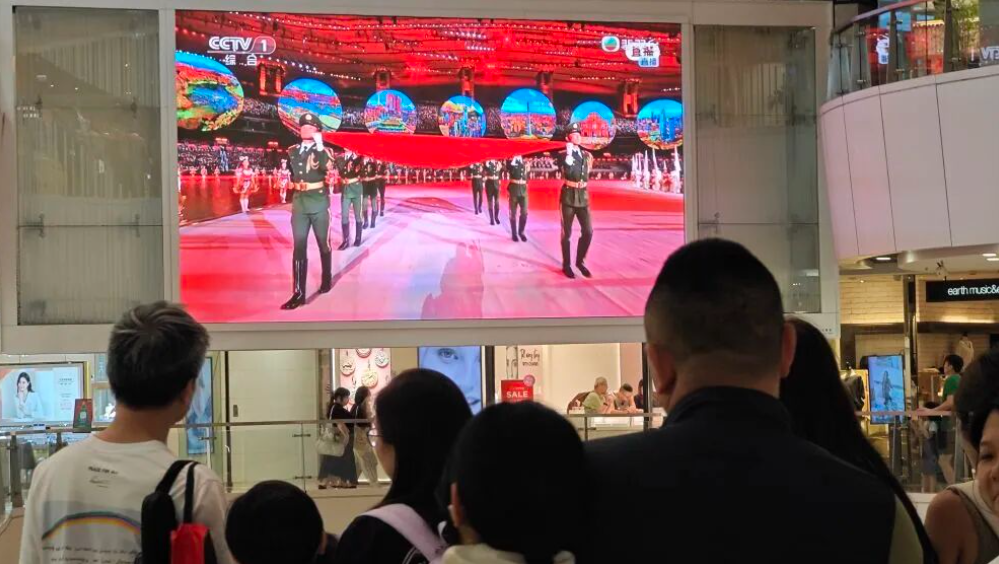 香港市民观看开幕式。新华社记者 陈铎 摄